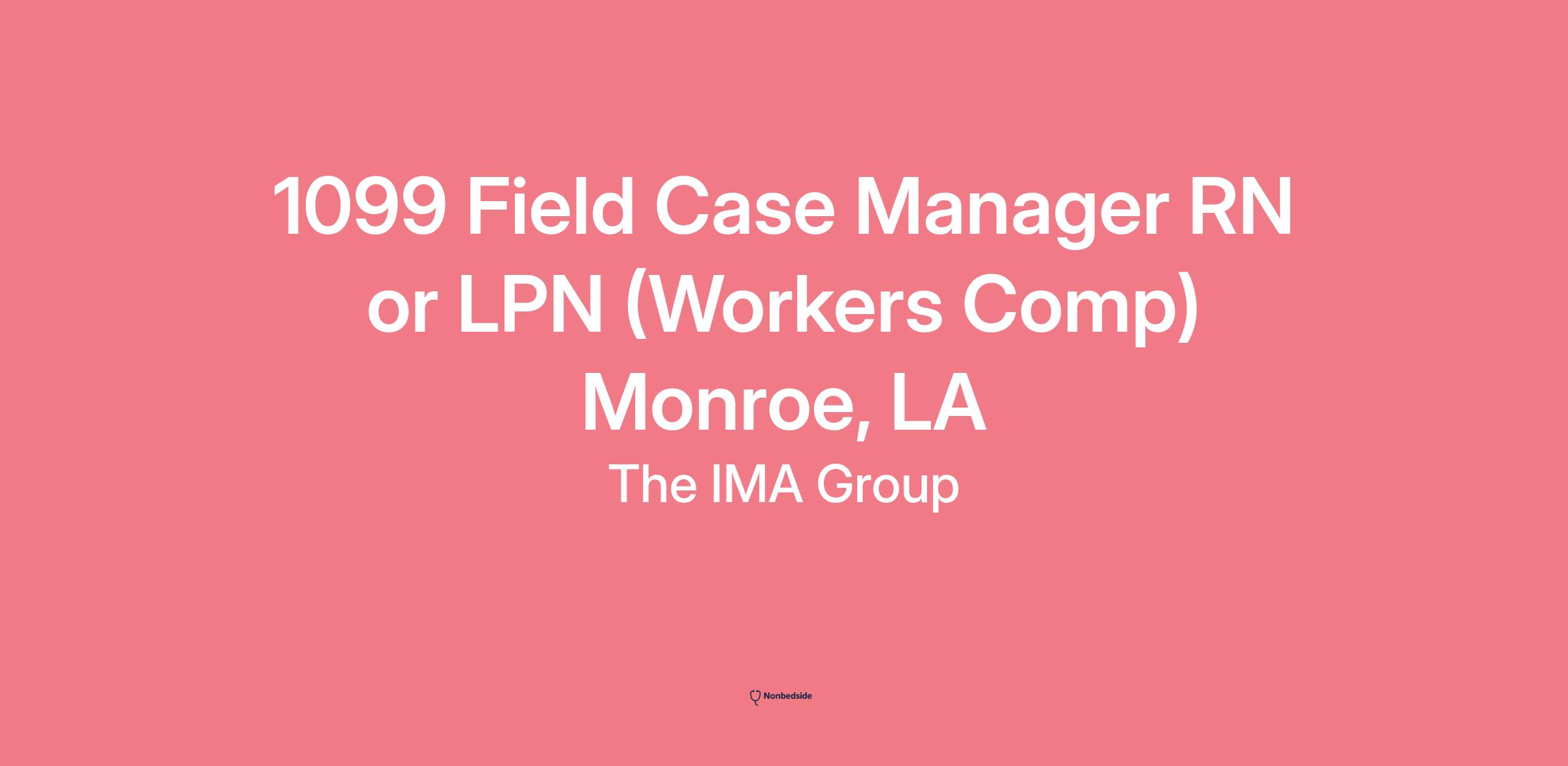 The IMA Group is actively expanding across Louisiana and seeking experienced Field Case Managers in Monroe, LA to join our growing 1099 network. We offer flexible, independent contractor opportunities for RNs or LPNs with at least one year of workers' compensation experience. Whether you're looking to manage a few cases or maintain a full caseload, we allow you to build a schedule that fits your availability.