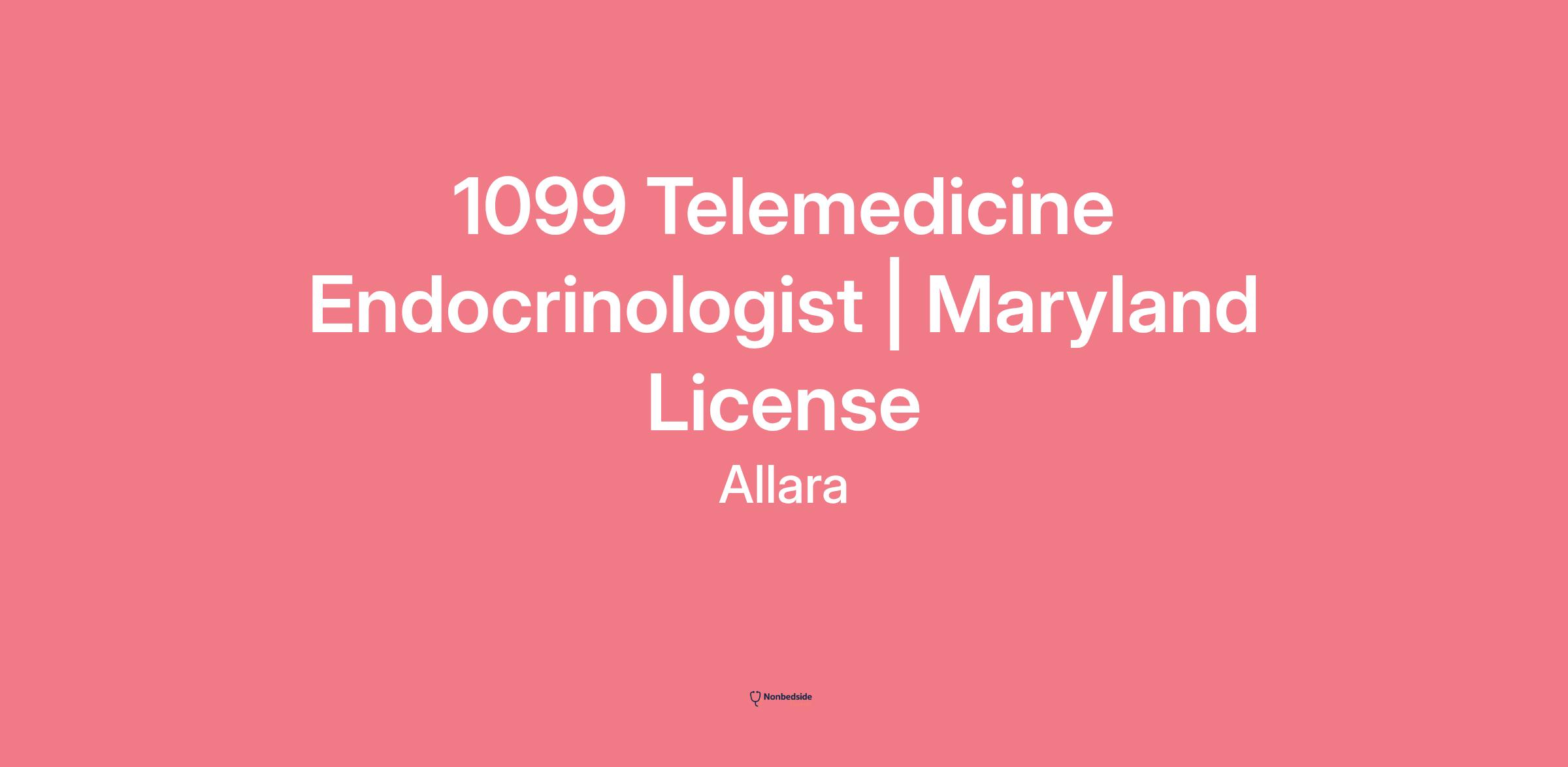 1099 Telemedicine Endocrinologist | Maryland License Join to apply for the 1099 Telemedicine Endocrinologist | Maryland License role at Allara
