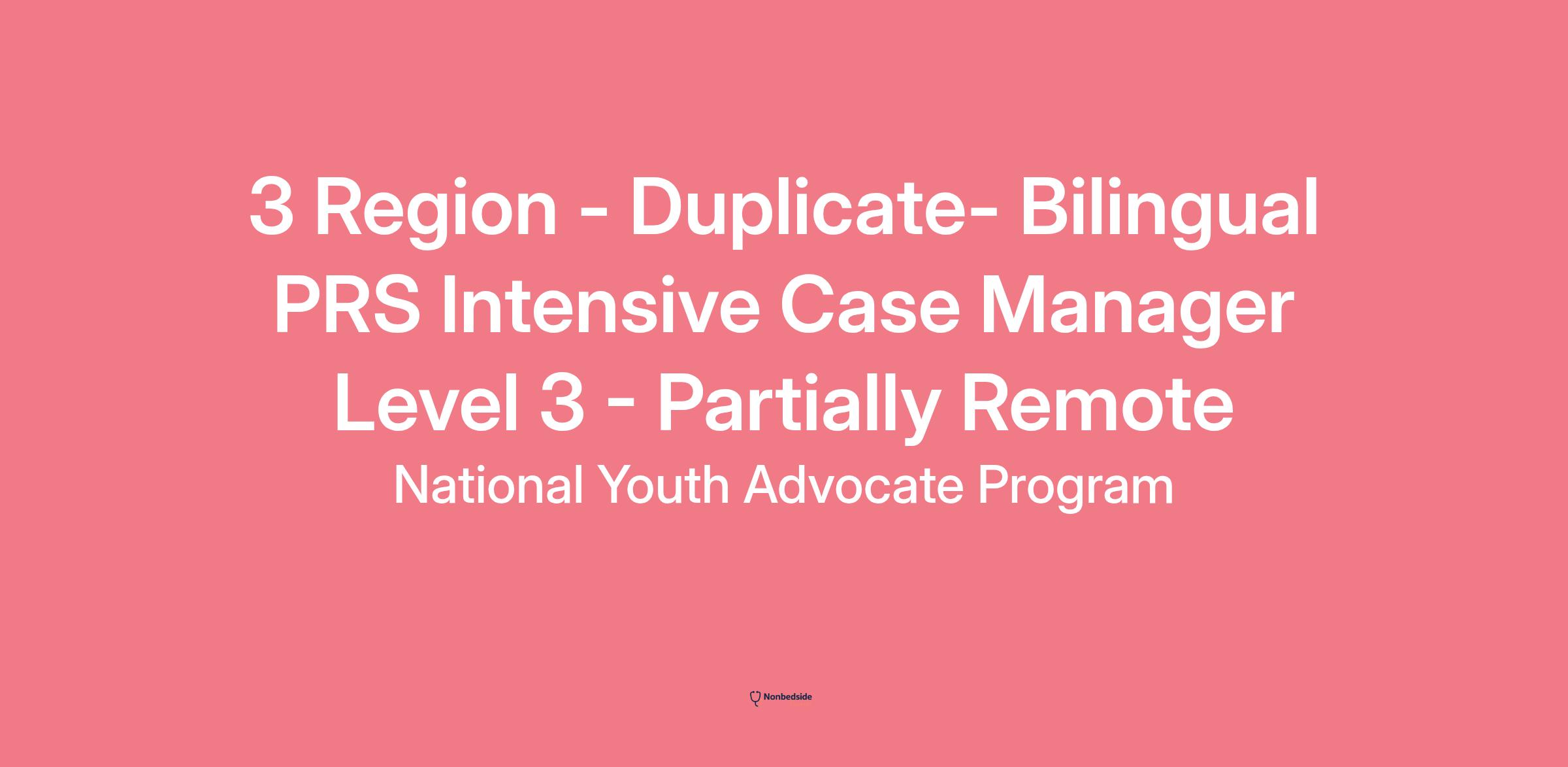 Position Summary Working under a grant from the Office of Refugee Resettlement (ORR), NYAP’s Post Release Services (PRS) Intensive Case Manager Level 3 provides post release services focused on stabilizing the family unit utilizing trauma-informed and intensive case management. The PRS Intensive Case Manager Level 3 will additionally connect with community-based services to address concerns that require long-term care. This position is required to travel to the initial in-home assessment followed by weekly in-person contacts for the first 45 to 60 days, then monthly in-person or virtual contacts for 6 months, depending on the needs of the family.