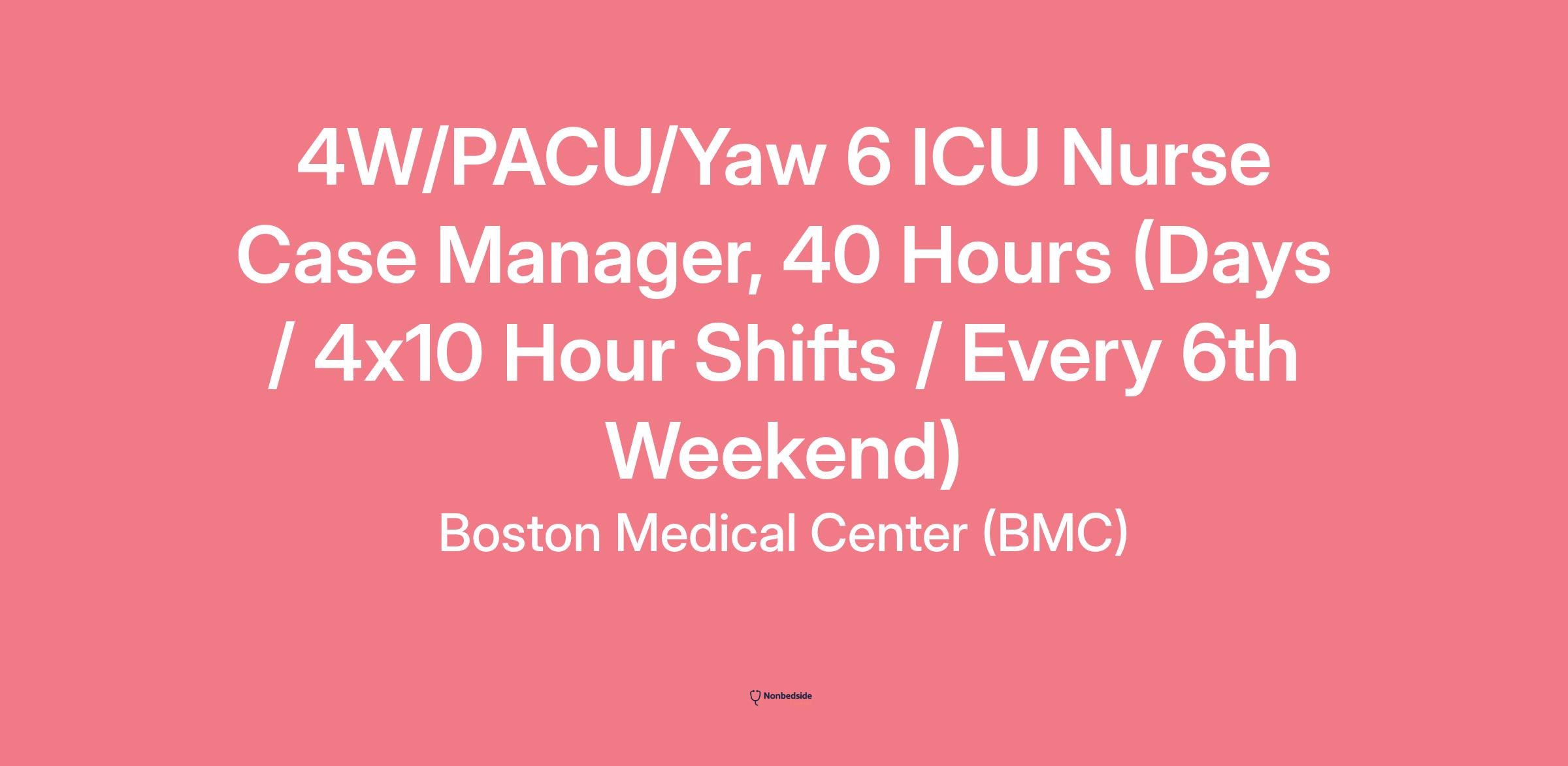 Overview 4W/PACU/Yaw 6 ICU Nurse Case Manager, 40 Hours (Days / 4x10 Hour Shifts / Every 6th Weekend)