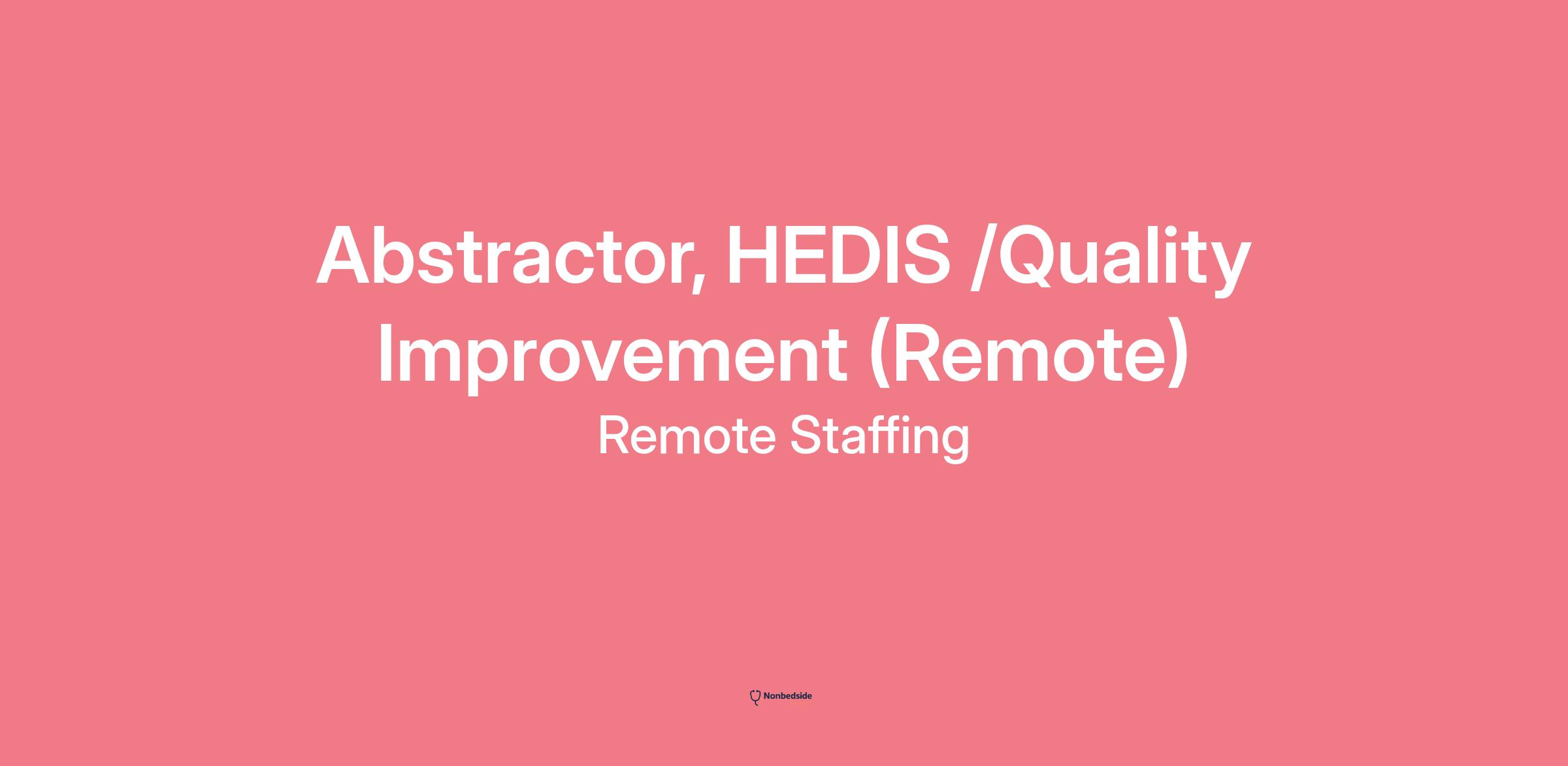 Abstractor, HEDIS /Quality Improvement (Remote)