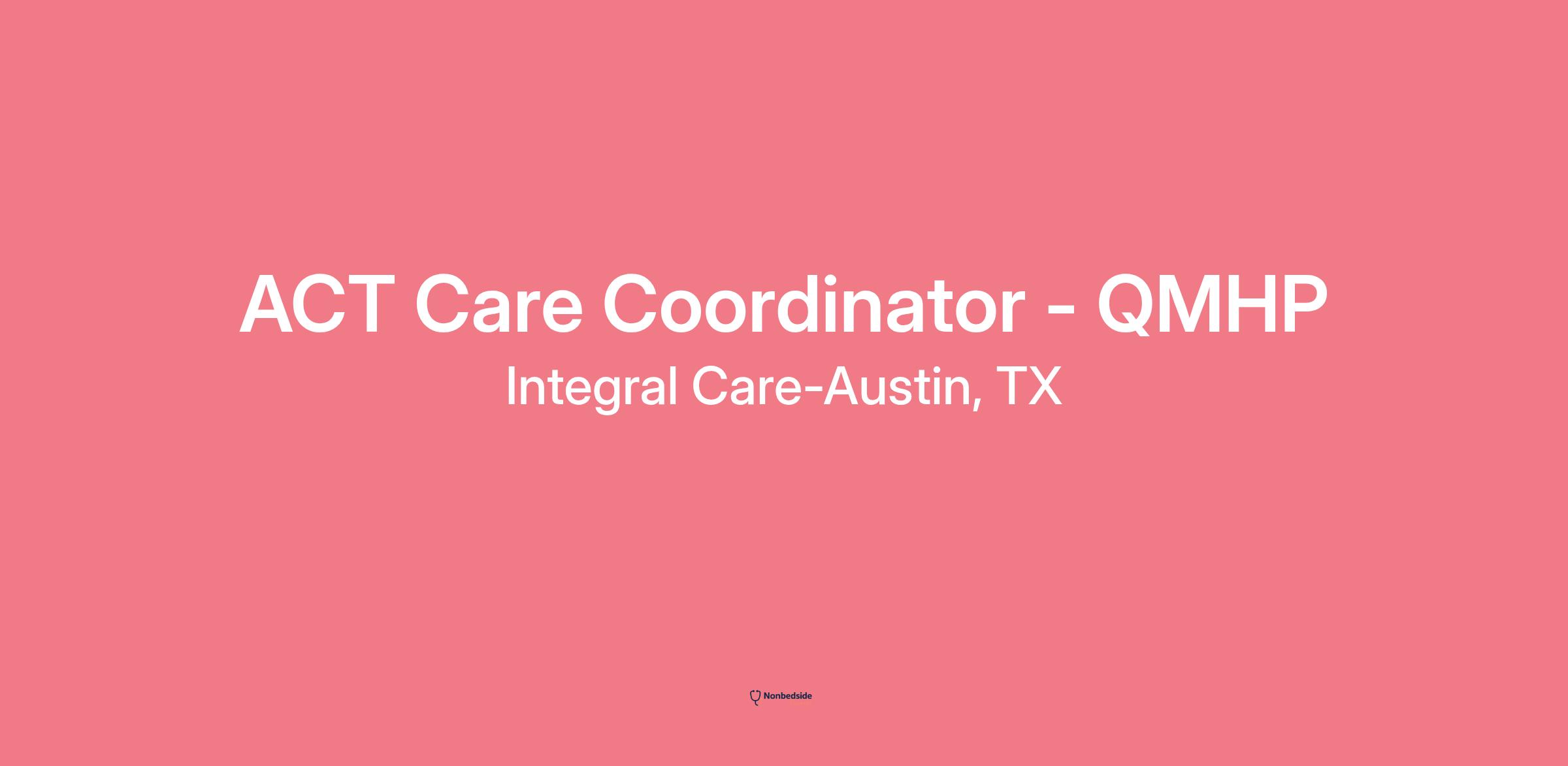 Overview Join to apply for the ACT Care Coordinator - QMHP role at Integral Care-Austin, TX .