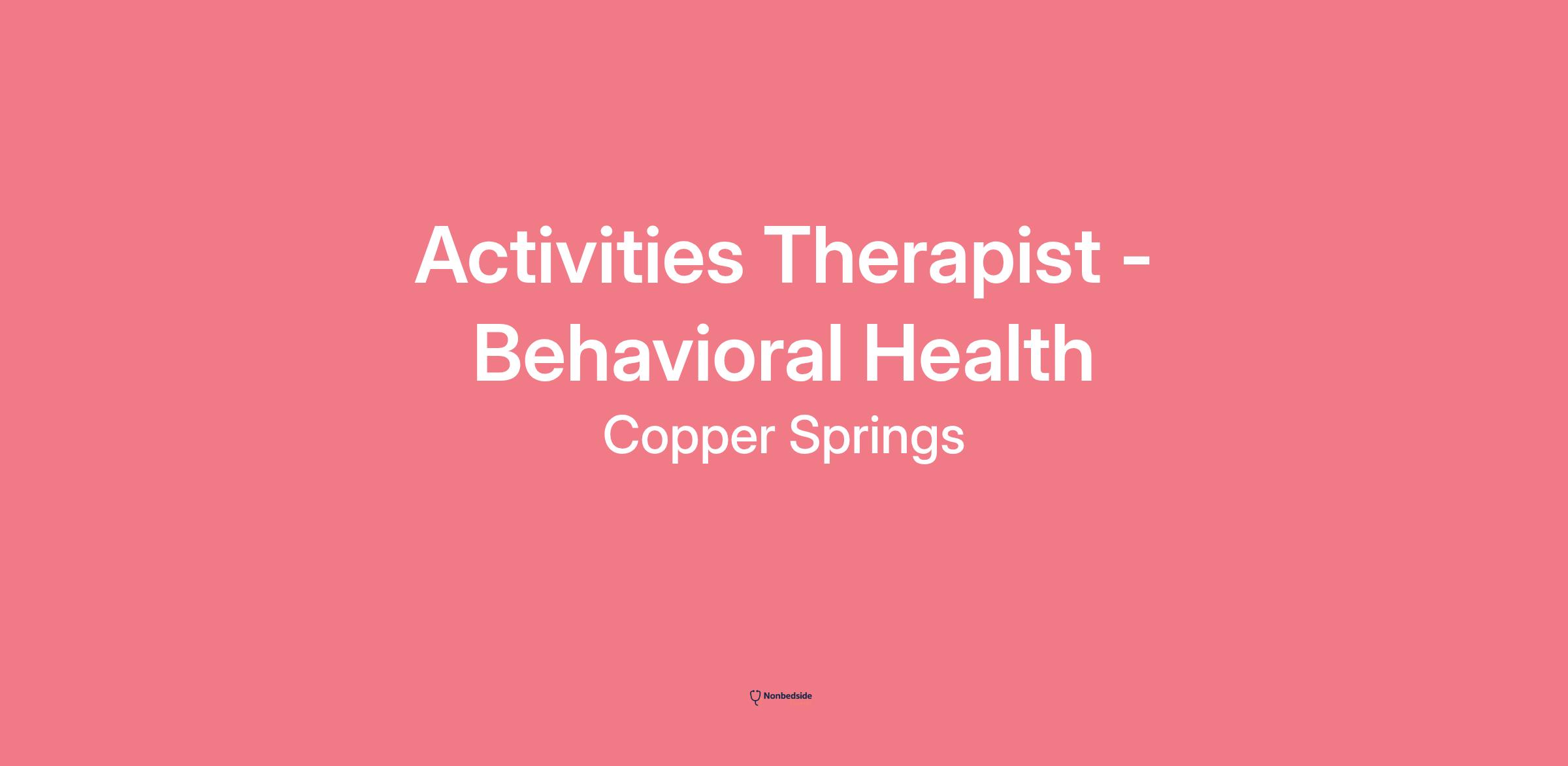 At Copper Springs, we are driven by a profound commitment to prioritize your well-being so you can provide exceptional care to others. Here, you're not just valued as an employee, but as a person. As an Activities Therapist joining our team, you're embracing a vital mission dedicated to making communities healthier. Join us on this meaningful journey where your skills, compassion, and dedication will make a remarkable difference in the lives of those we serve.