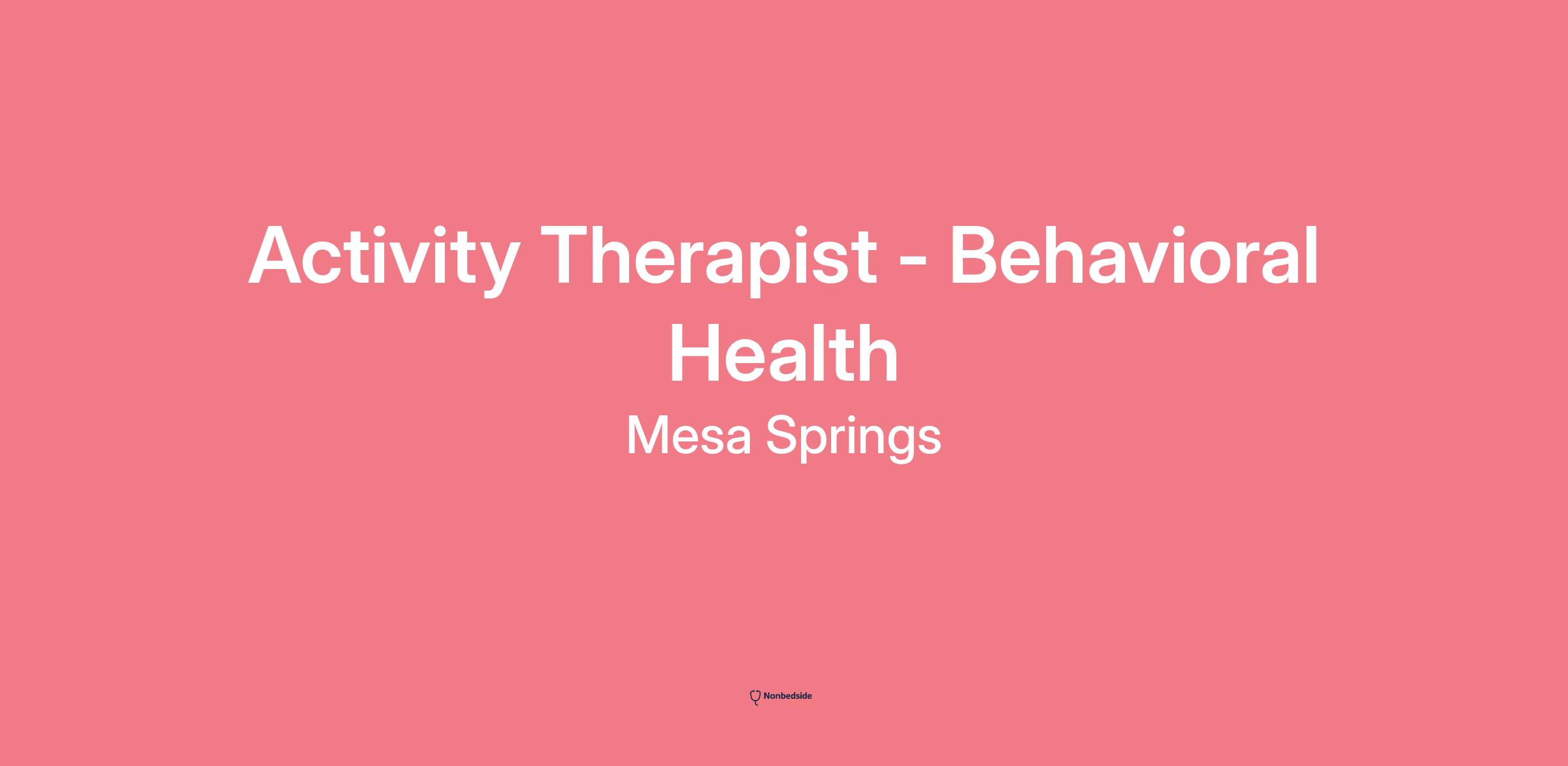 Mesa Springs is part of Lifepoint Health, a diversified healthcare delivery network with facilities coast to coast. We are driven by a profound commitment to prioritize your well-being so you can provide exceptional care to others. As an Activity Therapist joining our team, you're embracing a vital mission dedicated to making communities healthier ®. Join us on this meaningful journey where your skills, compassion and dedication will make a remarkable difference in the lives of those we serve.