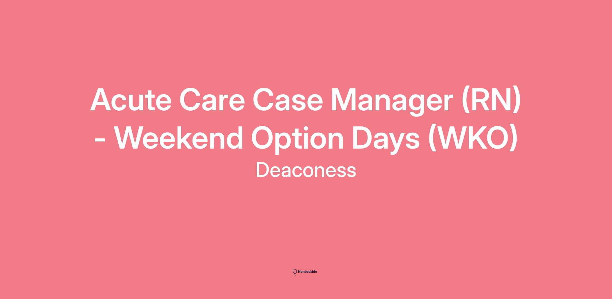 Other Keywords: Acute Care Case Manager // Case Management // Med/Surg // WKO