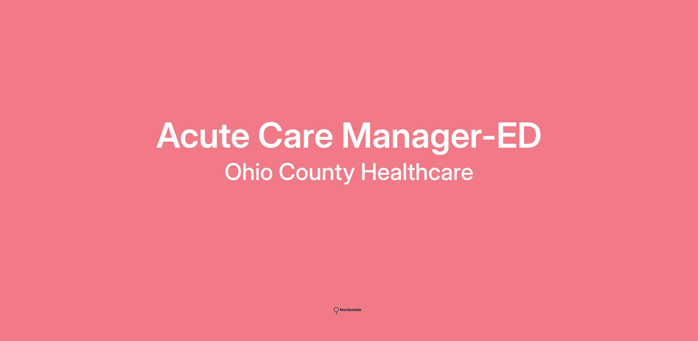 Overview Join to apply for the Acute Care Manager-ED role at Ohio County Healthcare .