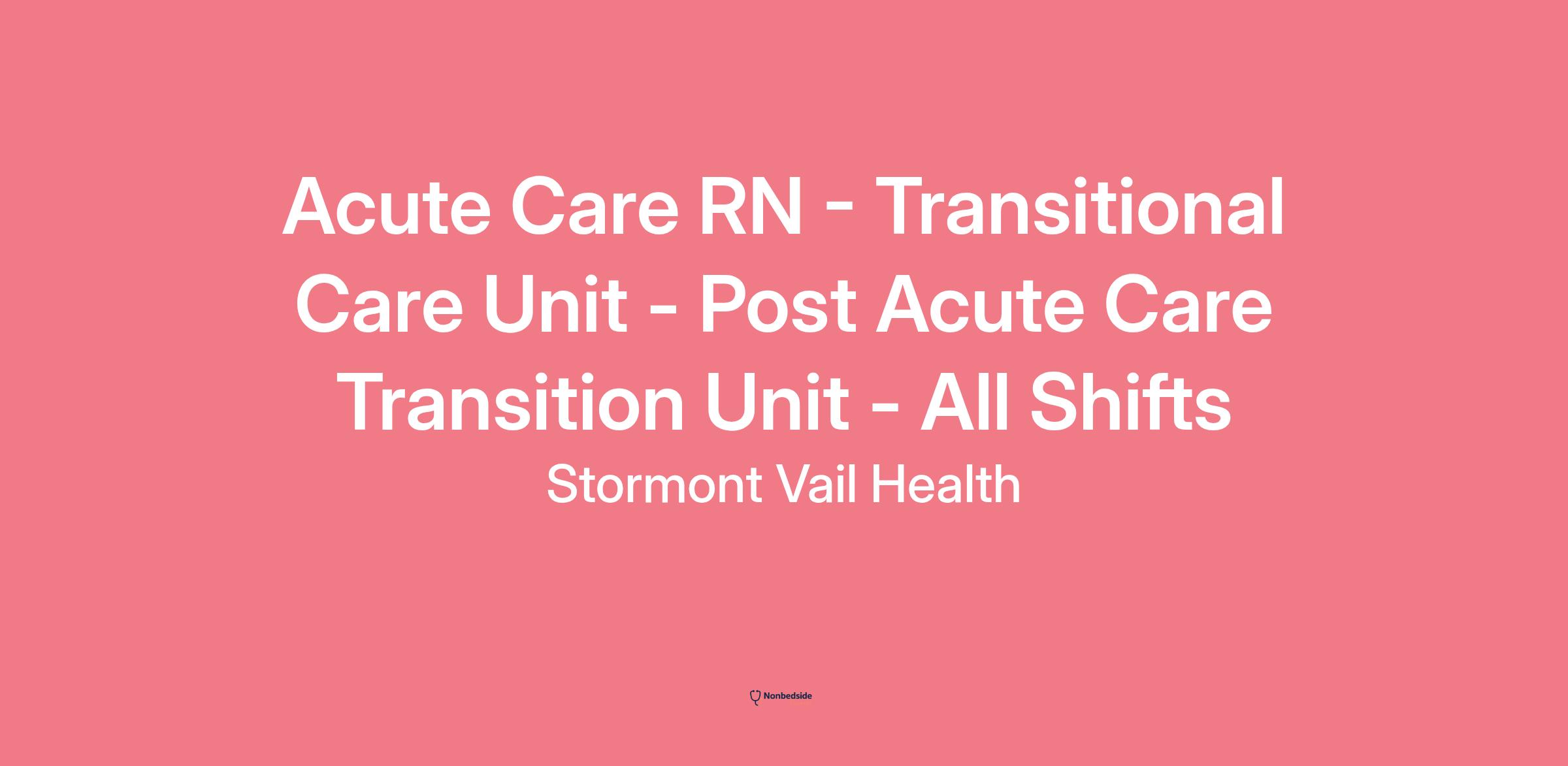 Overview Acute Care RN - Transitional Care Unit - Post Acute Care Transition Unit - All Shifts
