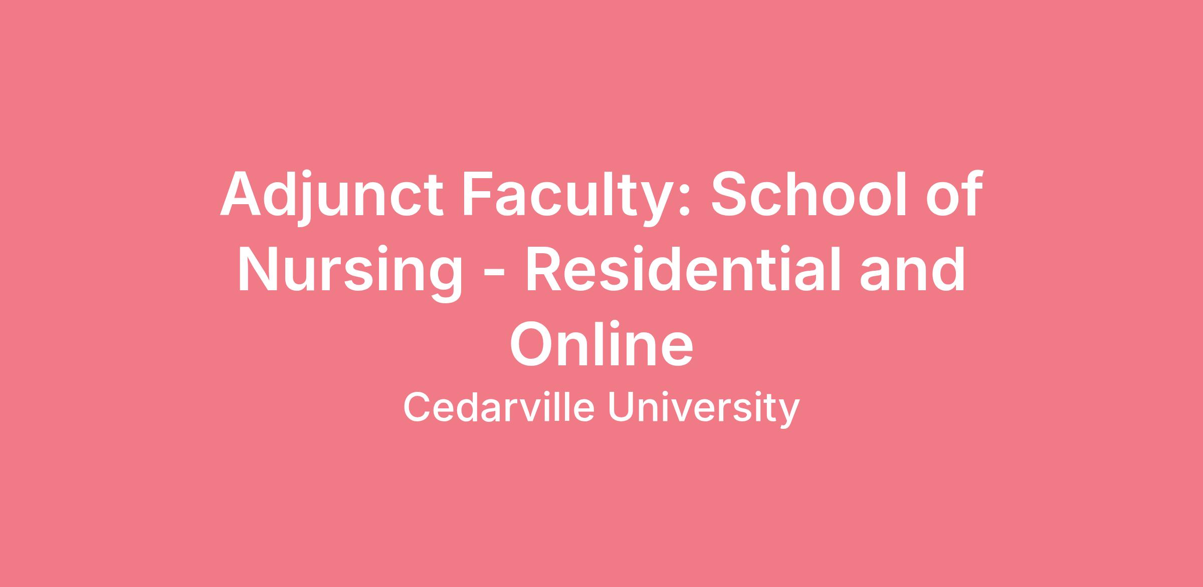 The Cedarville University School of Nursing invites applications for online and residential (on-campus) adjuncts to instruct in our undergraduate and graduate programs.