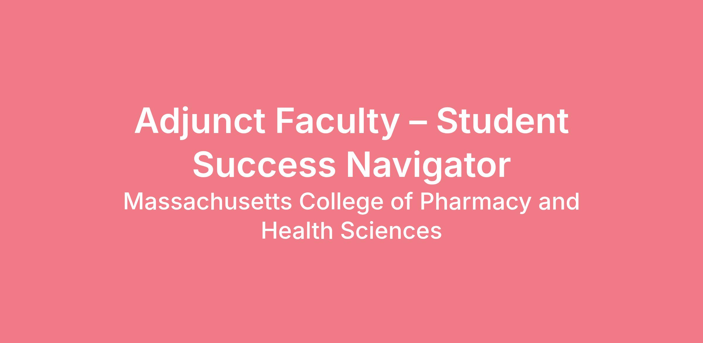 The School of Pharmacy- Worcester/Manchester seeks a qualified individual to serve as an adjunct faculty-student success navigator to support student learning experiences and success in the Doctor of Pharmacy Program. The selected candidate will work primarily in a remote capacity with responsibilities centered on early identification of student academic challenges and facilitation of student support strategies to promote progression.