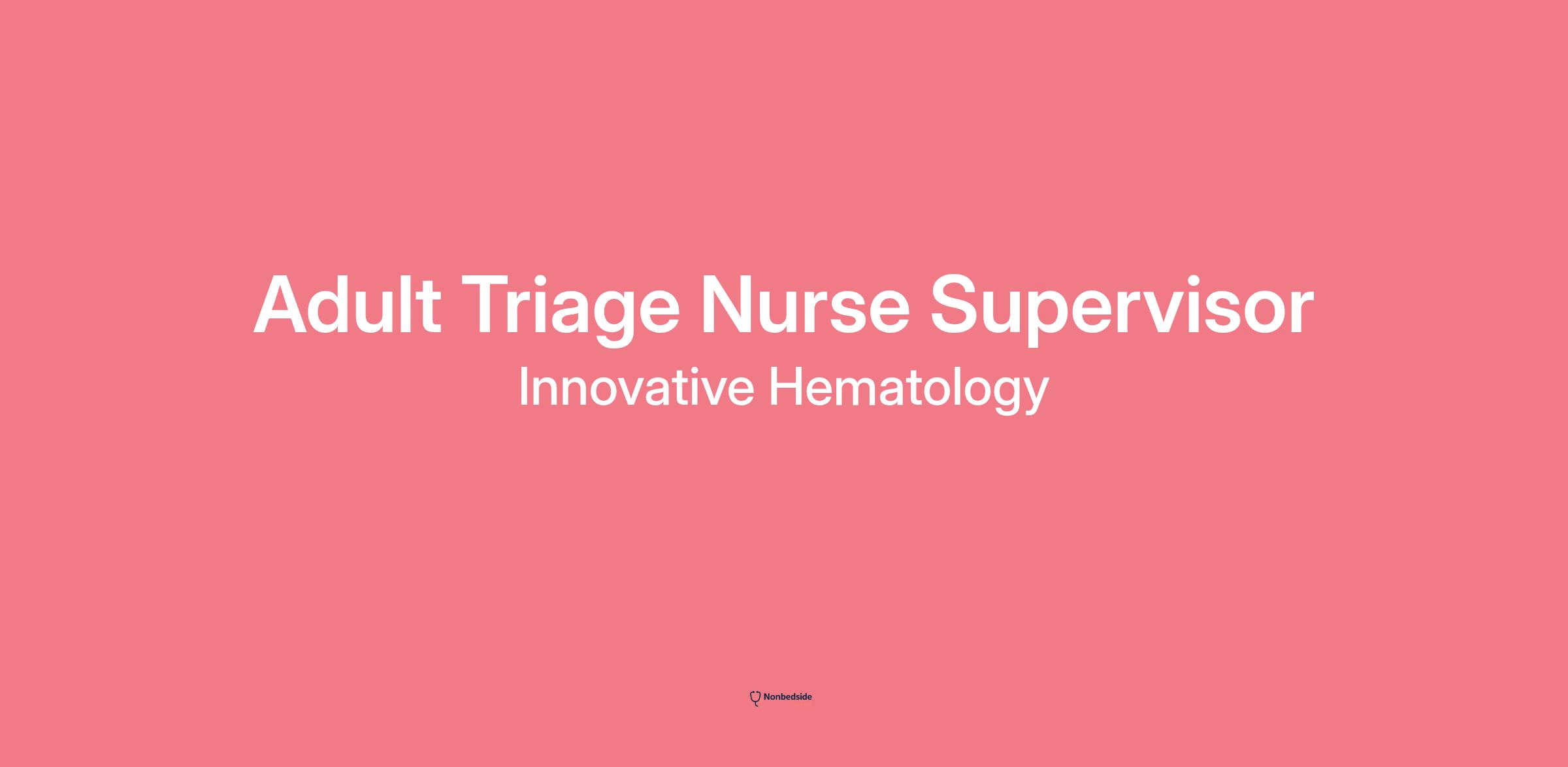 The Adult Triage Nurse Supervisor is responsible for promoting a positive patient and employee experience and expediting workflow within the adult triage nurse team, as well as providing telephone triage nursing care to patients.