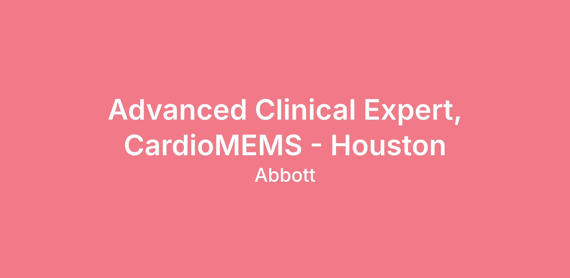 - Act as Advanced Clinical Expert internally within defined targeted accounts and within the Abbott HF organization.