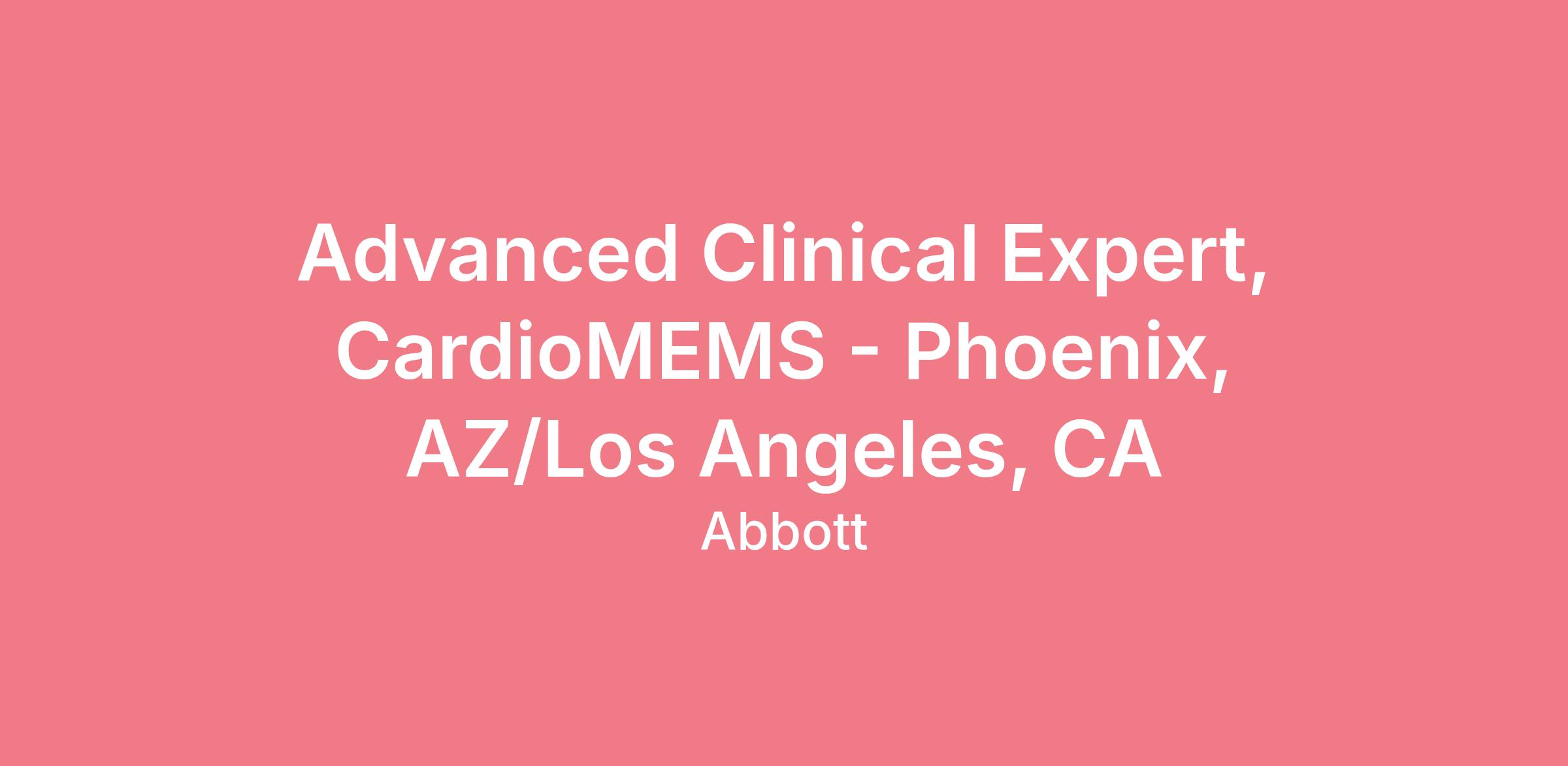 Advanced Clinical Expert, CardioMEMS - Phoenix, AZ/Los Angeles, CA