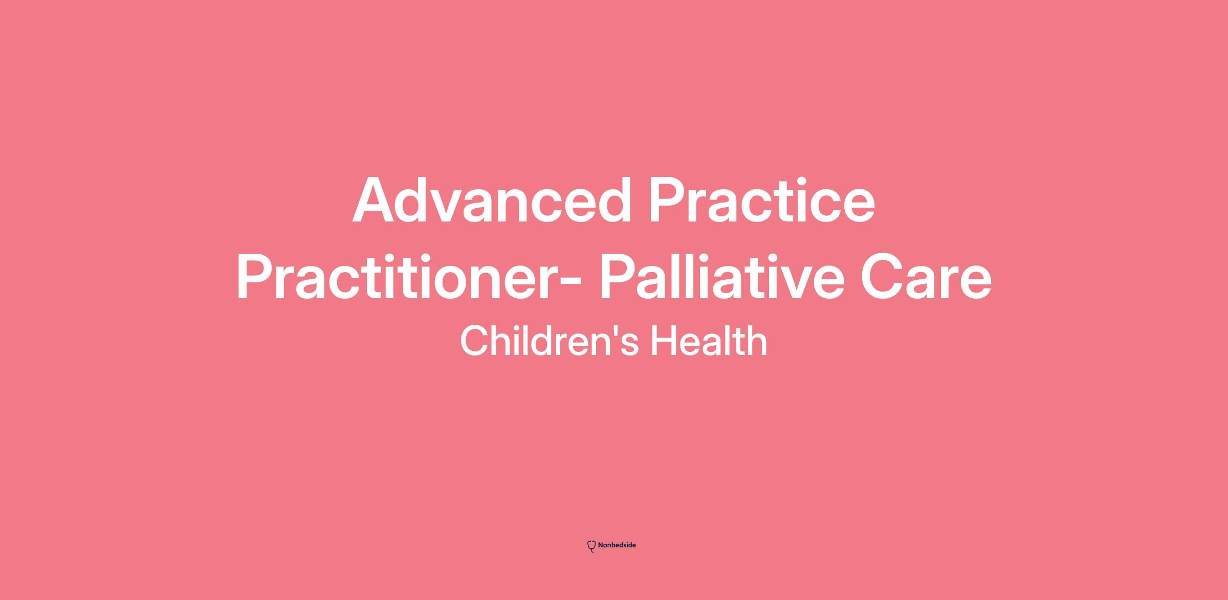 Advanced Practice Practitioner- Palliative Care Join to apply for the Advanced Practice Practitioner- Palliative Care role at Children's Health
