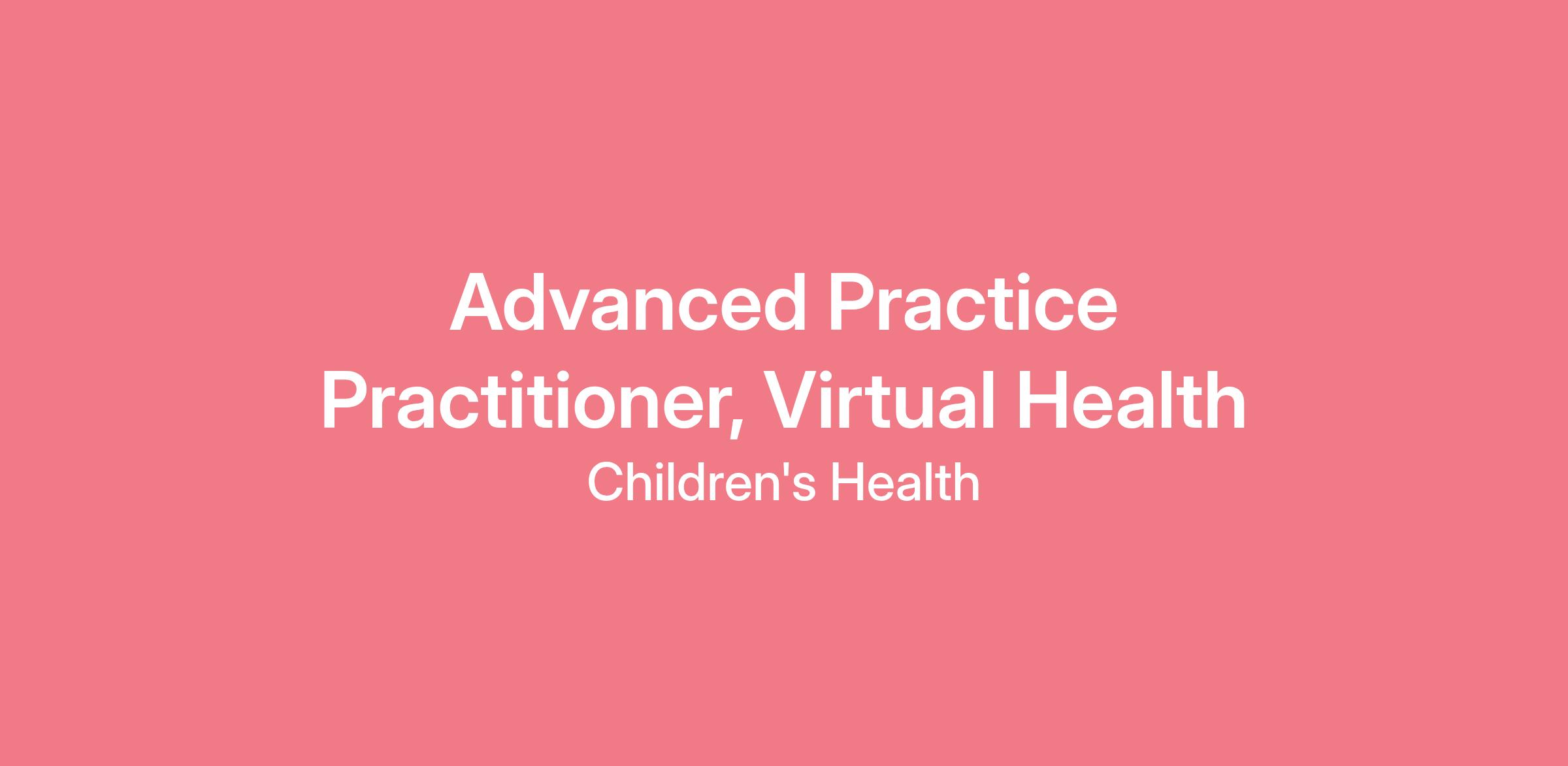 Job Title & Specialty Area: Virtual Health, Advanced Practice Practitioner