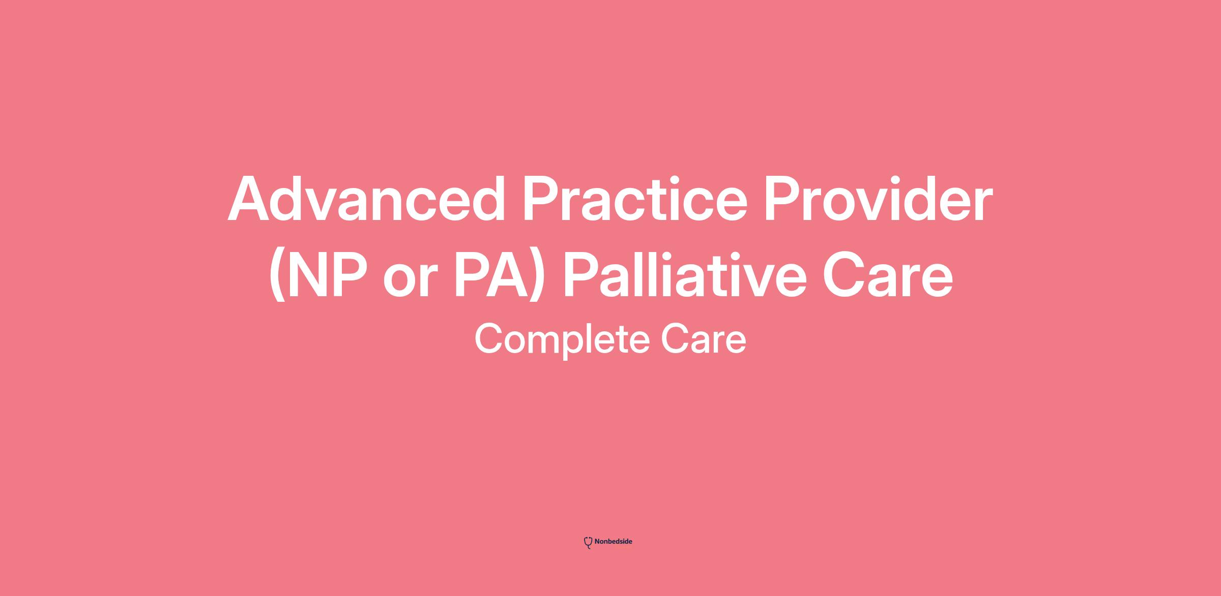 Overview Advanced Practice Provider (NP or PA) Palliative Care role at Complete Care. In-person position serving patients in New Jersey counties including Essex, Hudson, Union, Middlesex, Somerset, Monmouth, and Ocean. NJ Palliative Care partners with RWJ Barnabas Health and Complete Care.