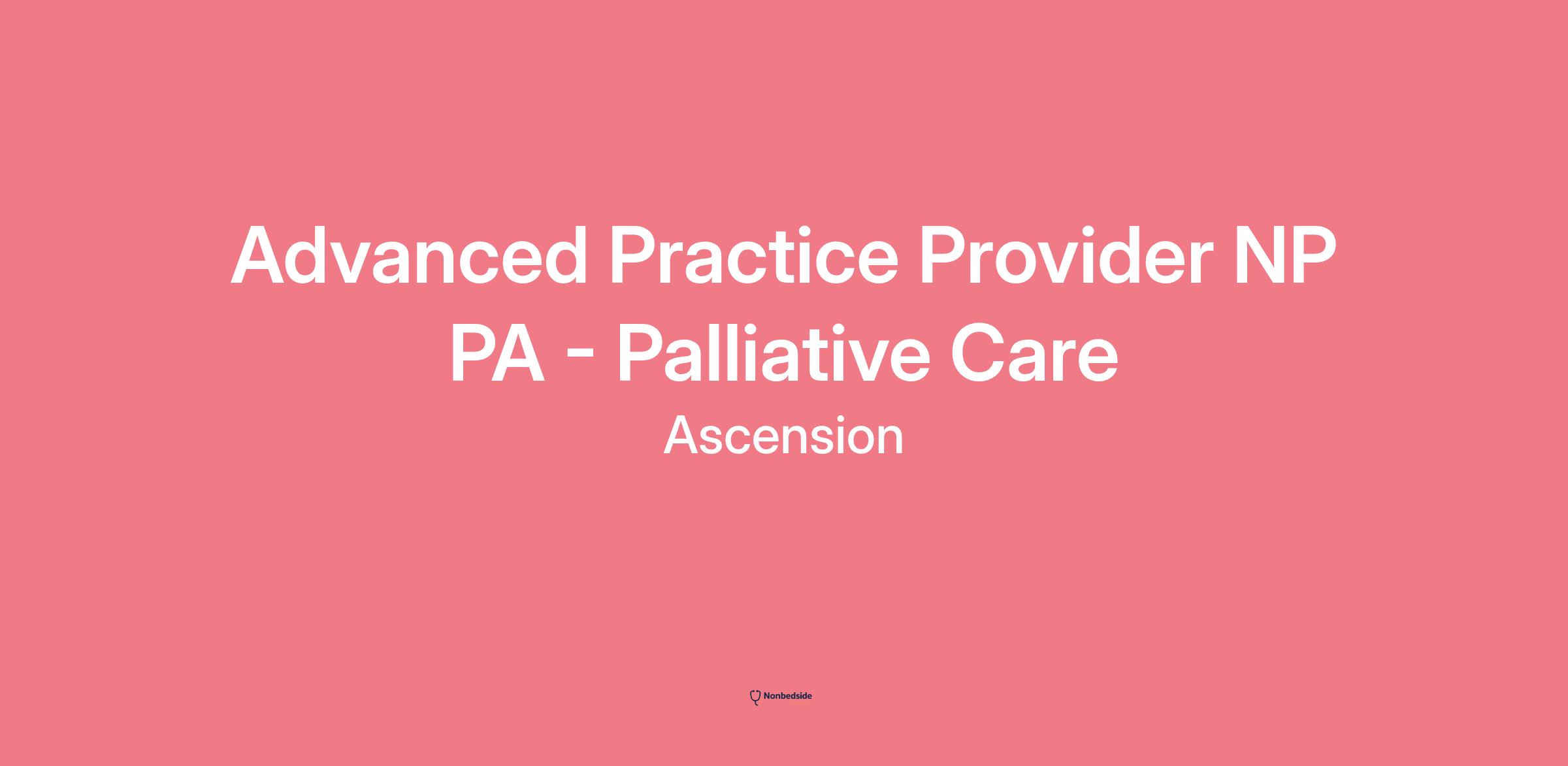 Advanced Practice Provider NP PA - Palliative Care Join to apply for the Advanced Practice Provider NP PA - Palliative Care role at Ascension