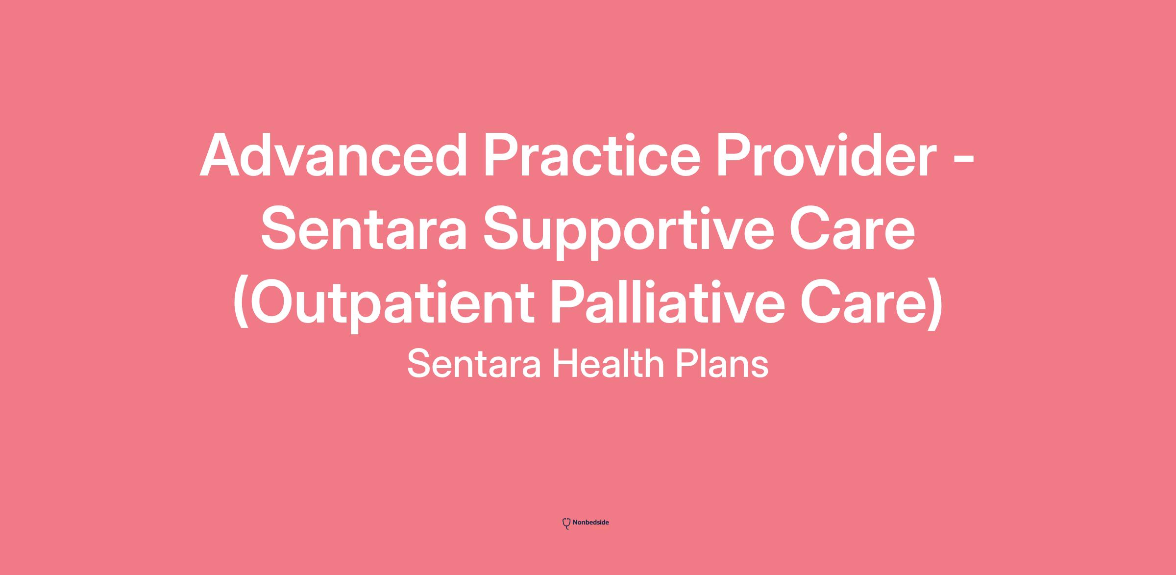 Advanced Practice Provider - Sentara Supportive Care (Outpatient Palliative Care) page is loaded## Advanced Practice Provider - Sentara Supportive Care (Outpatient Palliative Care)remote type: On-Sitelocations: Norfolk, VAtime type: Full timeposted on: Posted Todayjob requisition id: JR-88609**City/State**Norfolk, VA**Work Shift**First (Days)**Provider Specialty**Palliative Care**Overview:**Sentara Medical Group is seeking a **Nurse Practitioner or Physician Assistant** to join its **Outpatient Palliative Care team** at the **Supportive Care Cancer Center** located on the campus of **Sentara Norfolk General Hospital in Norfolk, VA.** The Nurse Practitioner or Physician Assistant will provide clinical care, education, and compassionate support for patients with advanced or serious illnesses as part of a collaborative interdisciplinary team.**Position Highlights:*** Monday–Friday; 8:00 a.m. – 4:30 p.m.* Performing outpatient palliative care consultations and follow-up visits for patients with complex symptom management and advanced care needs* Facilitating family meetings focused on medical decision-making, advance care planning, and goals of care discussions* Collaborating closely with referring oncology providers, social workers, and other interdisciplinary team members to ensure coordinated, holistic, and patient-centered care* Supporting seamless transitions of care, including coordination with home-based palliative care or hospice programs as appropriate* Participating in team meetings to promote best practices in symptom management, emotional support, and quality of life improvement for patients and families**Benefit Highlights:*** Comprehensive Benefits and Retirement Package* Malpractice and Tail Coverage* $3,000 Annual CME Allowance* $5,000 Annual QPI Bonus* $10,000 Student Loan Reimbursement Program* Fully Integrated EHR (Epic)* PSLF Eligible**Life in Norfolk, VA**Norfolk is the cultural and historic heart of Coastal Virginia—home to a vibrant downtown, the world’s largest naval base, and an active waterfront community. Residents enjoy a wide array of arts, entertainment, and dining options along with easy access to nearby beaches, parks, and trails. The city’s central location offers convenient access to Virginia Beach, Chesapeake, and Williamsburg, all within a short drive. Norfolk’s welcoming community and strong sense of pride make it an ideal place to live and work..-**Benefits: Caring For Your Family and Your Career**• Medical, Dental, Vision plans• Adoption, Fertility and Surrogacy Reimbursement up to $10,000• Paid Time Off and Sick Leave• Paid Parental & Family Caregiver Leave• Emergency Backup Care• Long-Term, Short-Term Disability, and Critical Illness plans• Life Insurance• 401k/403B with Employer Match• Tuition Assistance – $5,250/year and discounted educational opportunities through Guild Education• Student Debt Pay Down – $10,000• Annual CME Allowance• Reimbursement for certifications and free access to complete CEUs and professional development• Pet Insurance• Legal Resources Plan• 100% Malpractice and Tail Coverage• Colleagues may have the opportunity to earn an annual discretionary bonus if established system and employee eligibility criteria is metProviders at Sentara are eligible for special benefits such as Annual CME Allowance and 100% malpractice and tail coverage.**Sentara Health is an equal opportunity employer** and prides itself on the diversity and inclusiveness of its close to an almost 30,000-member workforce. Diversity, inclusion, and belonging is a guiding principle of the organization to ensure its workforce reflects the communities it serves.In support of our mission “to improve health every day,” this is a tobacco-free environment.**For positions that are available as remote work,** **Sentara Health employs providers in the following states:**North Carolina, Nevada, South Carolina, South Dakota, Tennessee, Texas, Virginia, West Virginia and Wisconsin.