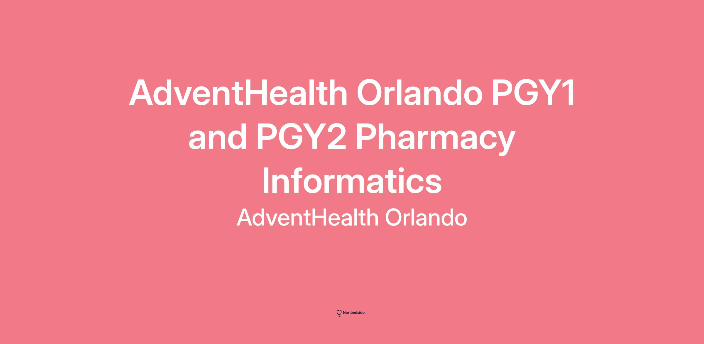 Overview Welcome to the PGY1 and PGY2 Pharmacy Informatics Residency at AdventHealth Orlando.