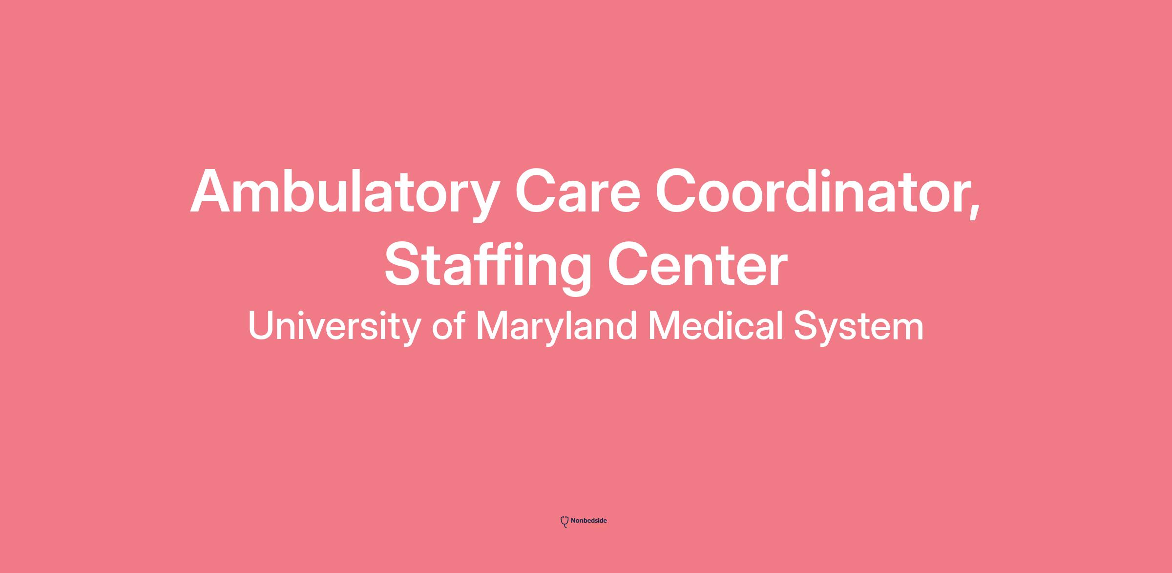 Ambulatory Care Coordinator, Staffing Center