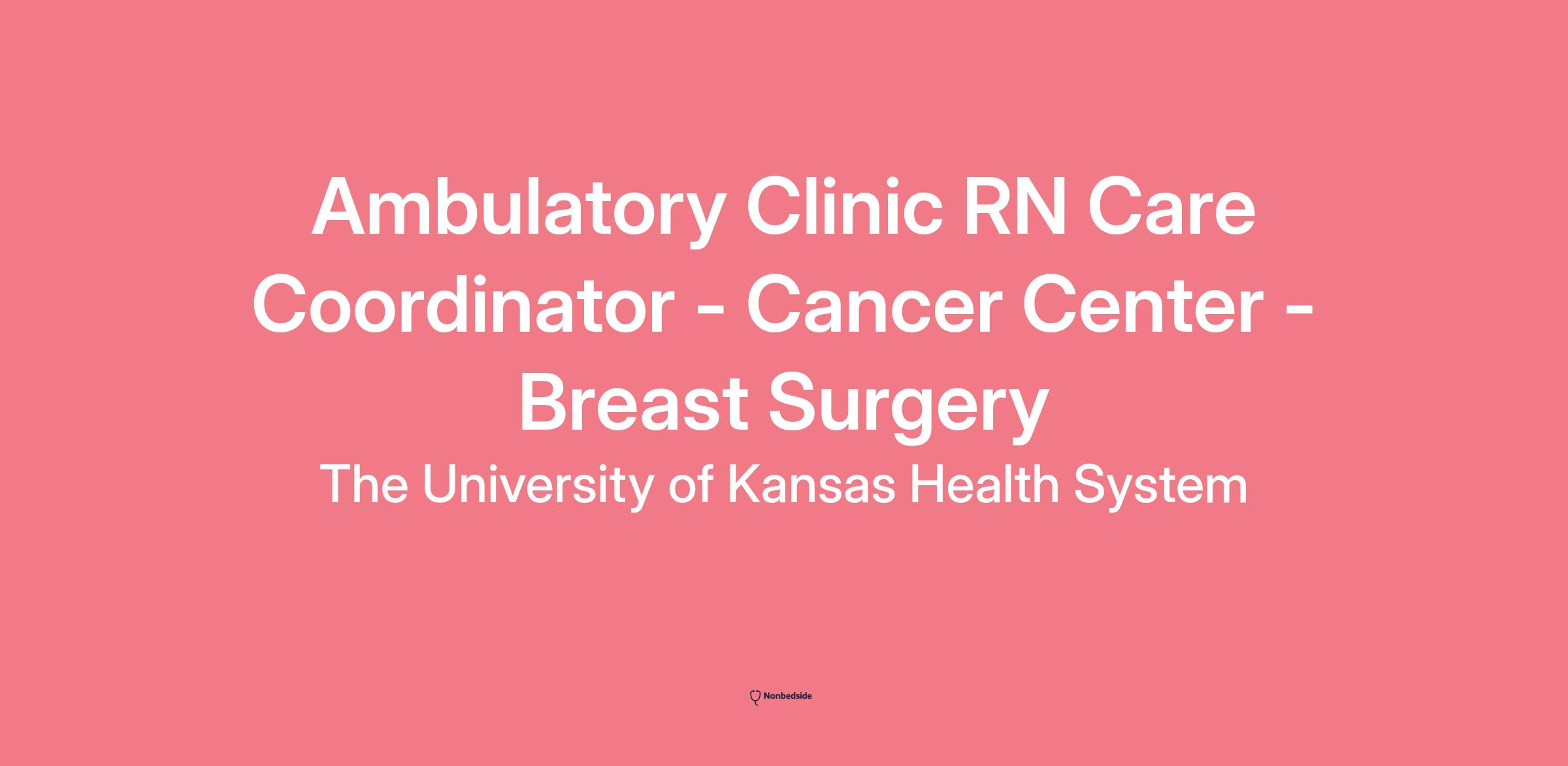 Ambulatory Clinic RN Care Coordinator - Cancer Center - Breast Surgery Days