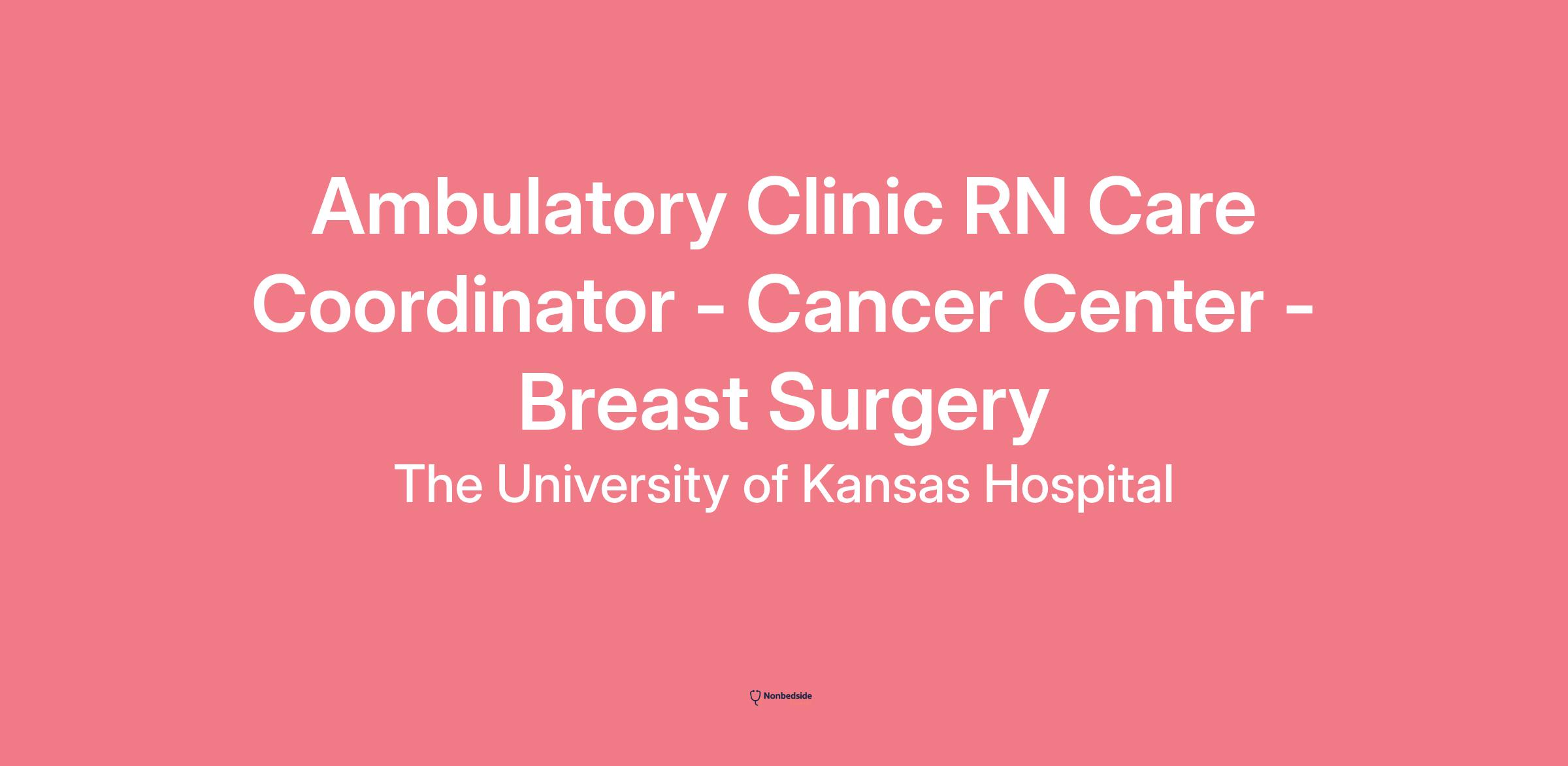 Ambulatory Clinic RN Care Coordinator - Cancer Center - Breast Surgery