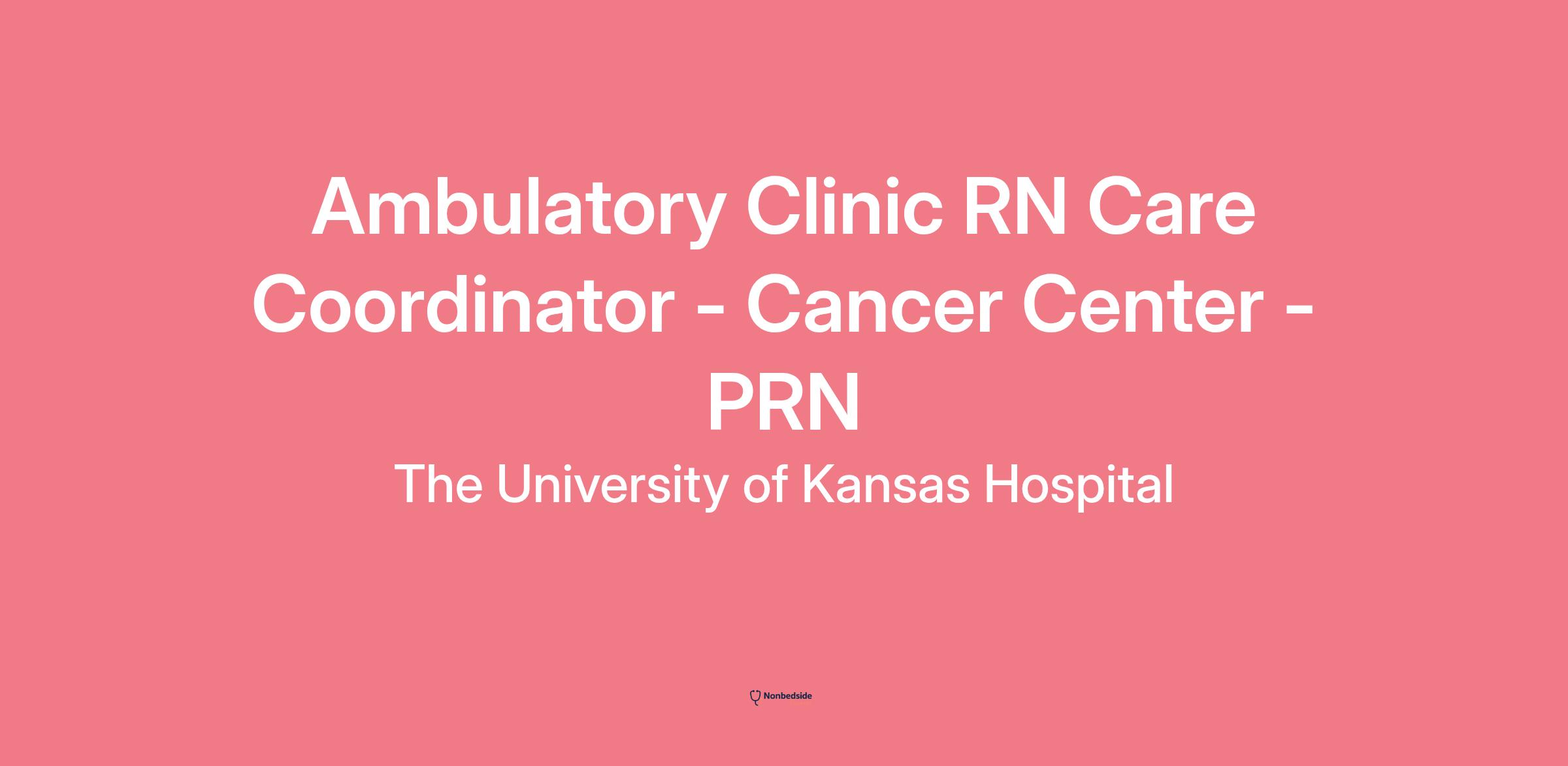 Ambulatory Clinic RN Care Coordinator - Cancer Center - PRN