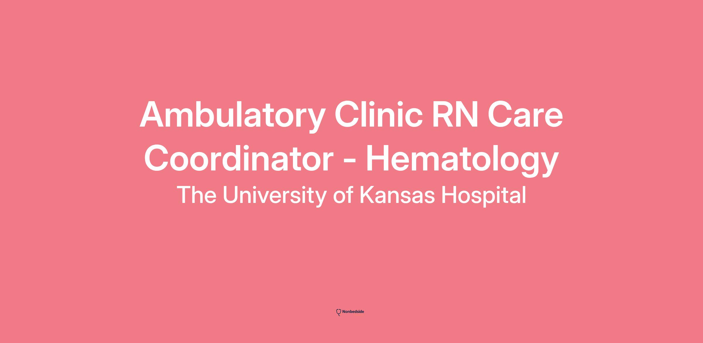 Ambulatory Clinic RN Care Coordinator - Hematology Our nurses are leaders and decision makers, working closely with physicians to provide the best care and most advanced treatments. On our team, you’ll work in an environment of respect and professionalism, and you’ll have the support to advance your nursing career in the direction you choose. Find out more about the wide variety of opportunities for nurses at The University of Kansas Health System.