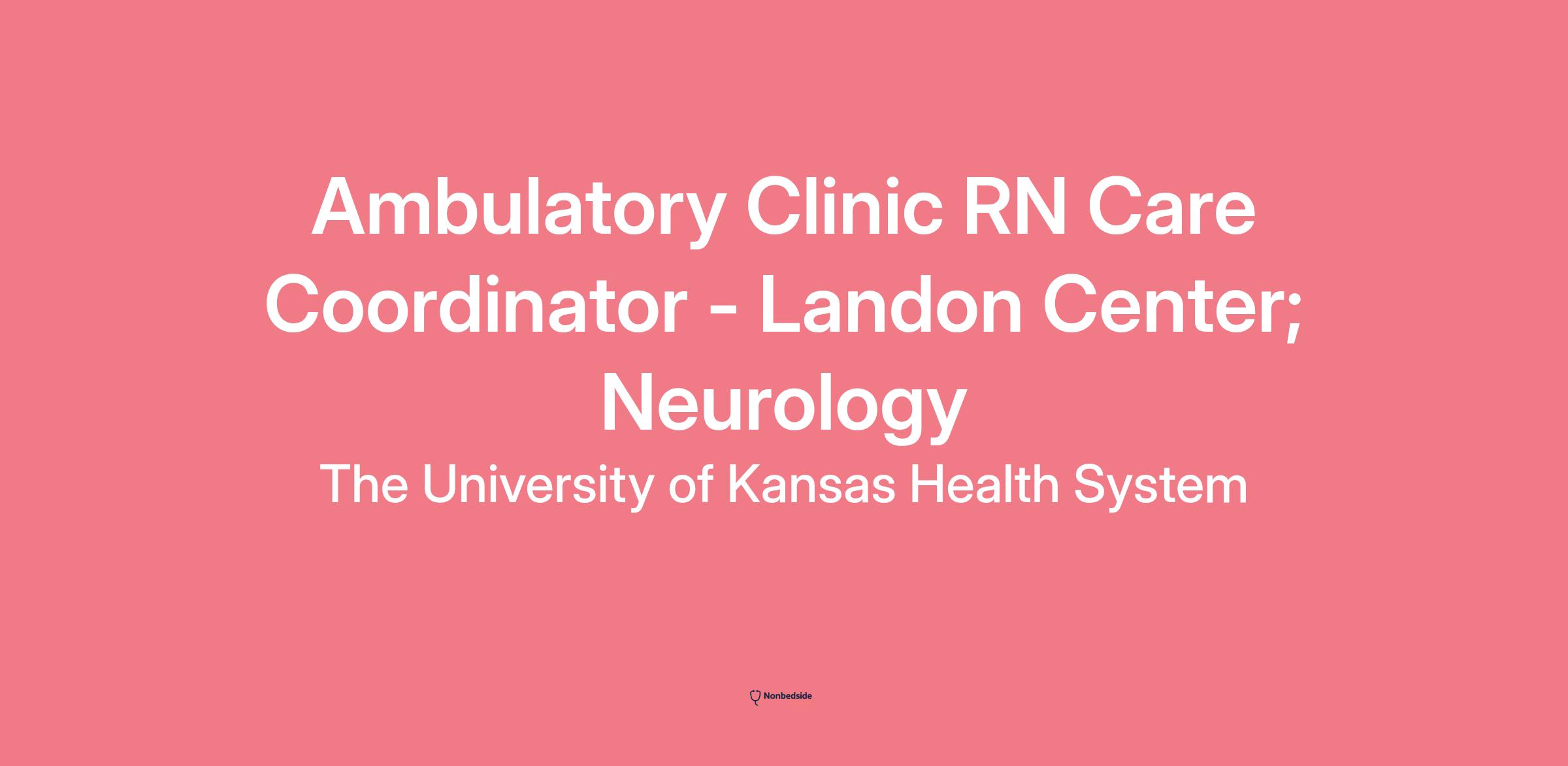 # Position TitleAmbulatory Clinic RN Care Coordinator - Landon Center; NeurologyLandon Center on Aging## Position Summary / Career Interest:The Ambulatory Clinic RN Care Coordinator is a licensed registered professional nurse who is a clinical expert who provides ethical, evidence-based, safe and compassionate nursing care. The Ambulatory Clinic RN Care Coordinator focuses on patient safety and the quality of nursing care by identifying and clarifying patient needs, performing clinic related patient care, conducting health education, promoting patient advocacy, coordinating healthcare services, and evaluating patient outcomes. The RN Care Coordinator will provide support to their assigned physicians by communicating with the patient/family/caregiver and relaying the information to the physician. They will provide support and nursing care services during the physician's clinic sessions and ensuring the patient/family/caregiver understands the plan of care. They will verify all orders placed during the clinic session have been completed and the physician has been notified of the results.**Responsibilities and Essential Job Functions*** Responsible for management of patient flow, triage, and direct patient care.* Liaison of communication between front desk staff, nursing staff, physicians, and clinic manager* Manage the care of the patient population by developing expected patient outcomes, defining appropriate resource utilization, and working with the provider to set patient goals.* Provide nursing support/coordination to the practice to optimize patient outcomes and to improve patient’s quality of life through clinical and educational programs and/or support services.* Support patient self-management of disease.* Coordinate continuity of patient care with patients and families following hospital admission, discharge, and ER visits.* Manage high risk patient care, including management of patients with multiple co-morbidities or high risk for readmission to a hospital setting, including a registry.* Develop relationships with patients and competently uses assessment skills to identify physical, psychosocial, financial, and environmental health care needs of the patient.* Educate the patient and appropriate ancillary personnel about the health care needs, safety issues and benefits which include patient education.* Utilize available electronic tools, such as EMR, to efficiently document assessments, clinical finds, plans of treatment and progress toward goals.* Observes, records and reports patient's condition and reaction to drugs and treatments to physicians. Educates patient/family about diagnostic procedures, medications, nutrition and maintenance of health and wellness.* Maintains/reviews patient records, charts and other pertinent information. Records tests and examination results and then follows up with patient. Posts tests and examination results.* Responds to/refers incoming patient treatment-related phone calls. Instructs patient and family regarding medications and treatment instructions.* Maintains patient confidentiality.* In providing patient care, document using EMR to maintain and/or develop patient records in compliance with practice standards* Must be able to perform the professional, clinical and or technical competencies of the assigned unit or department.* These statements are intended to describe the essential functions of the job and are not intended to be an exhaustive list of all responsibilities. Skills and duties may vary dependent upon your department or unit. Other duties may be assigned as required.**Required Education and Experience*** High School Graduate* Bachelor Degree Nursing* 2 or more years of RN experience.**Preferred Education and Experience*** Previous medical office experience.**Required Licensure and Certification*** Basic Life Support Heartsaver (BLS HS) (Non-Clinical) - American Heart Association (AHA) or obtained within 14 days* Licensed Registered Nurse (LRN) - Multi-State - State Board of Nursing* Must have current active multi-state Registered Nurse (RN) license in good standing in state in which you live OR active single state RN license in good standing in the state you will be working, with proof of application of a multi-state RN license in the state in which you live. Staff hired prior to 2/1/2024 are required to obtain a multi-state RN license from the state in which they live at the time of their next RN license renewal by 3/31/2026.**Knowledge Requirements*** Basic typing and word processing ability.* Excellent analytical, critical thinking and problem-solving skills.## Time Type:Full time## Job Requisition ID:R-47723### *We are an equal employment opportunity employer without regard to a person’s race, color, religion, sex (including pregnancy, gender identity and sexual orientation), national origin, ancestry, age (40 or older), disability, veteran status or genetic information.*We can recommend jobs specifically for you! Create a custom Job Alert by selecting criteria that suit your career interests.