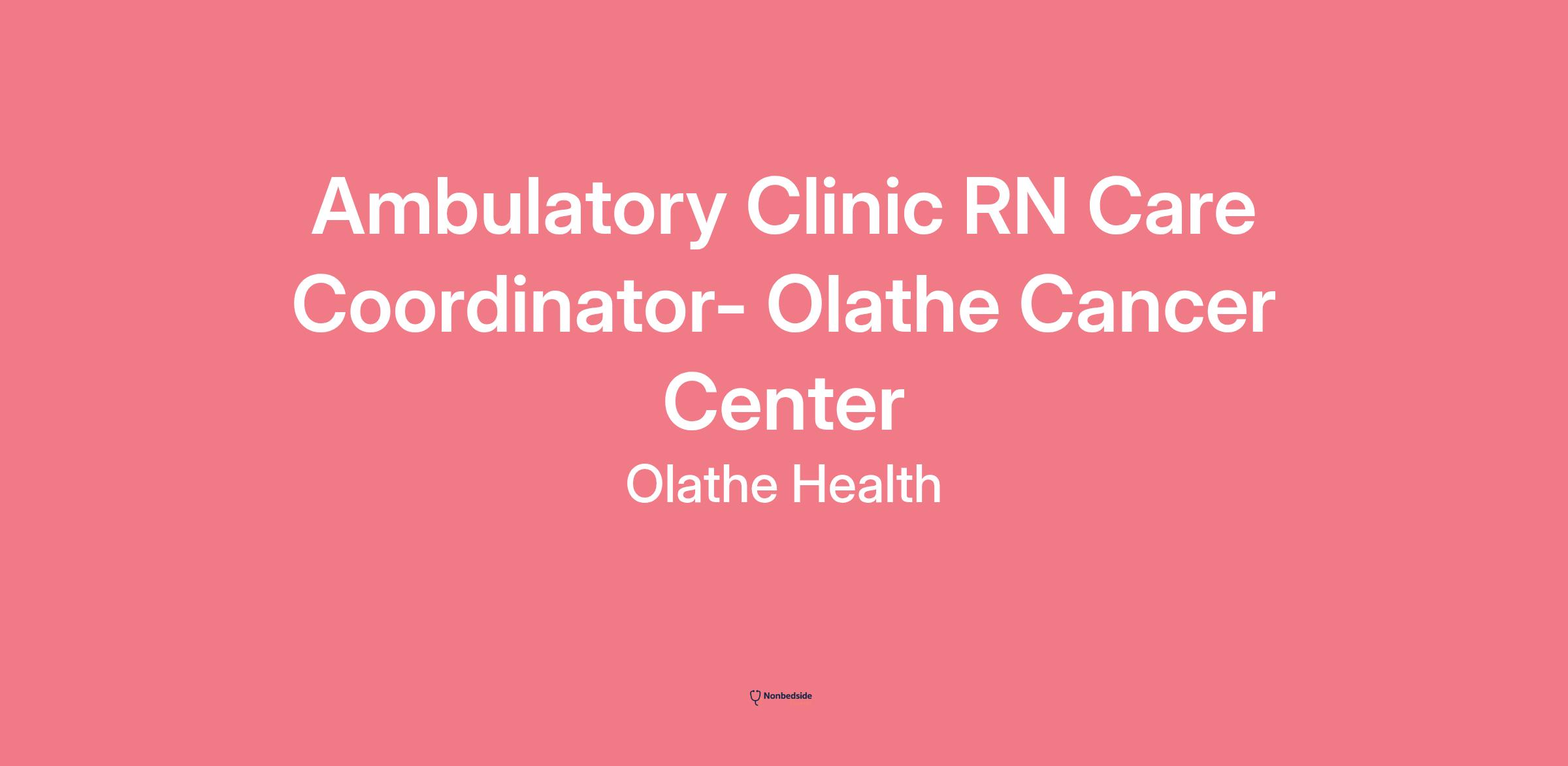 Ambulatory Clinic RN Care Coordinator- Olathe Cancer Center Join to apply for the Ambulatory Clinic RN Care Coordinator- Olathe Cancer Center role at Olathe Health