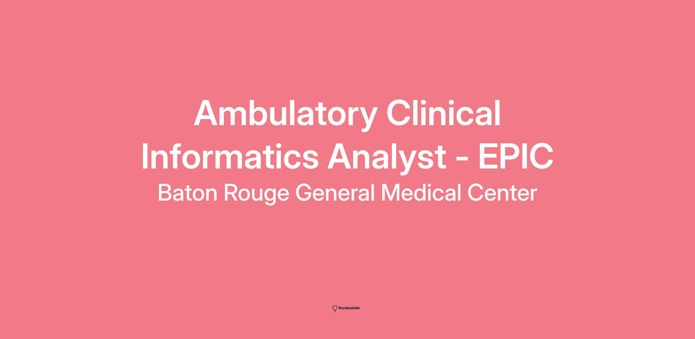 Join to apply for the Ambulatory Clinical Informatics Analyst - EPIC role at Baton Rouge General Medical Center