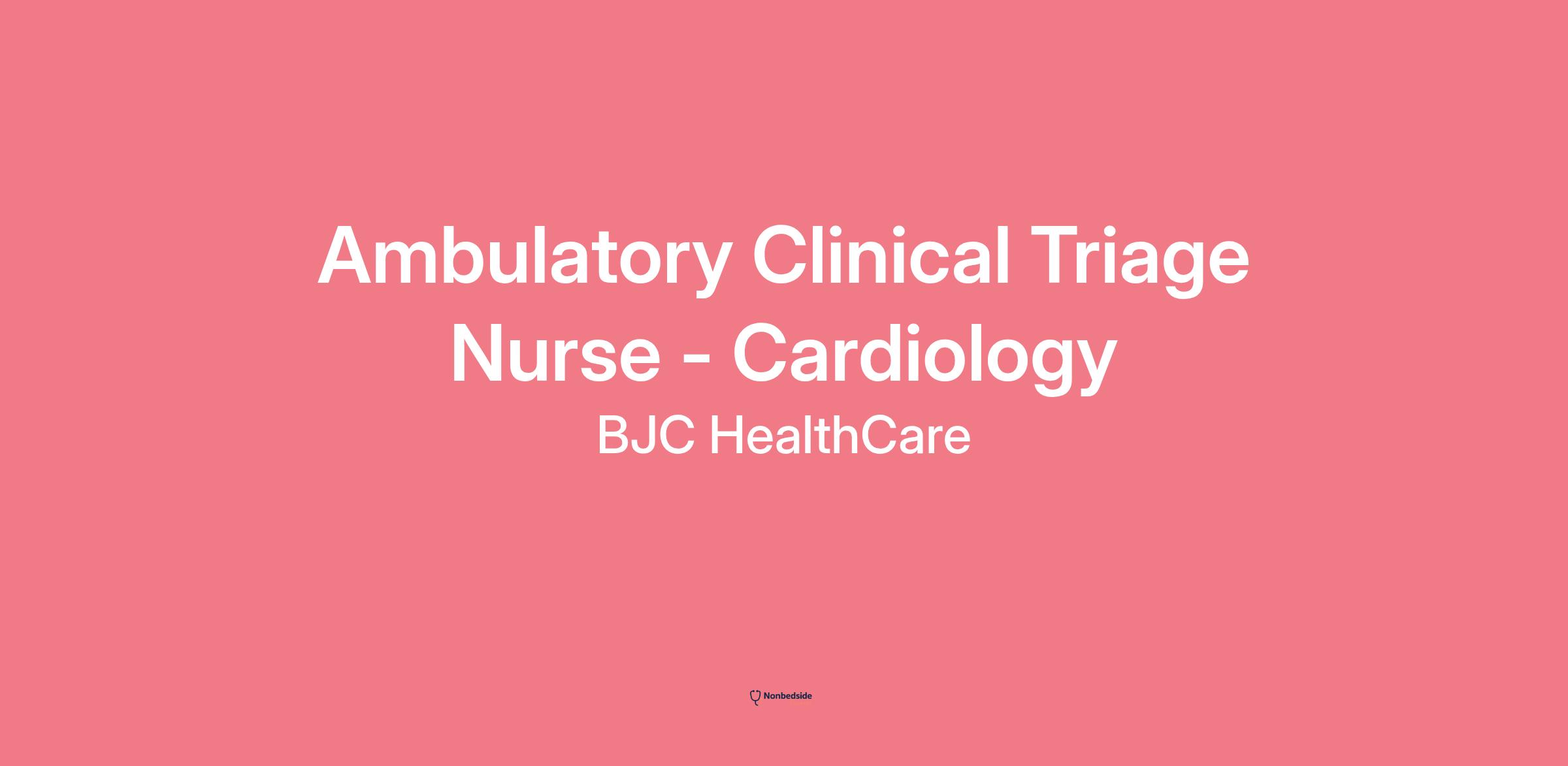Come join our team as a full-time Ambulatory Clinical Triage Nurse with BJC Medical Group in Cardiology located in Creve Coeur, this is a rare opportunity to join a great team!