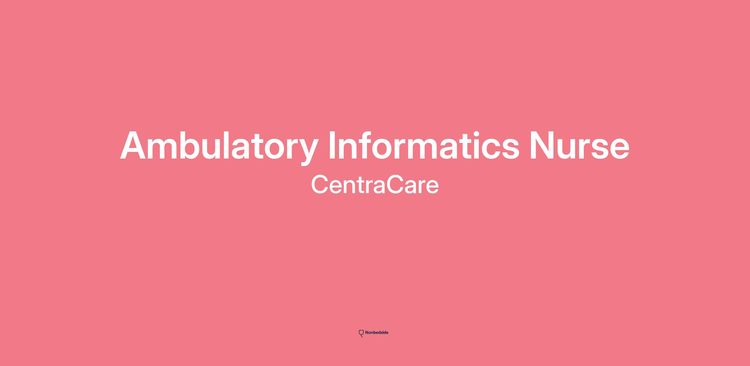 Find your purpose with CentraCare as an Ambulatory Informatics Nurse with our I.S. Informatics and Optimization team!