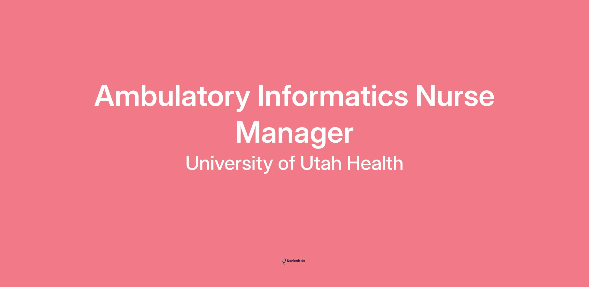Join to apply for the Ambulatory Informatics Nurse Manager role at University of Utah Health .