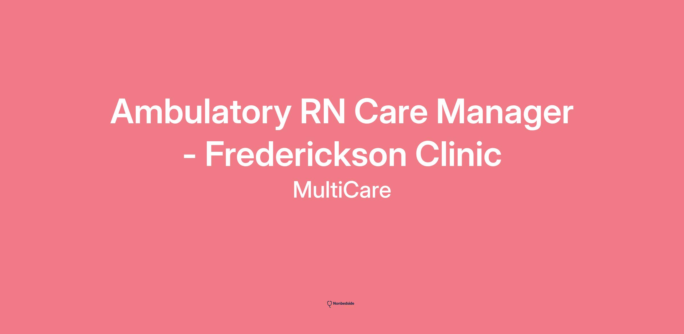 As an Ambulatory RN Care Manager you'll be responsible for exemplary cross-continuum care coordination, orchestrating care across the health care system and identifying opportunities to improve patient care, services and overall population health. You'll employ the nursing process in the delivery of patient-centered nursing care and work collaboratively with multiple disciplines and resources facilitating wellness, and transitions of care for patients in the ambulatory environment. This role offers you a great opportunity to apply your motivation, organization, substantial clinical competency, self-direction, interpretation of information and judgement skills and abilities to achieve the organization's goal of providing safe, reliable, and effective heath care excellence, patient-centered care and community engagement. It's an exciting time to be a nurse at MultiCare. We are on a journey to become a best-in-class nursing organization. Together, we are creating an environment where nurses are owners in the clinical decision-making process, are well connected, have open communication with their colleagues, feel supported to develop professionally, and understand the future of nursing at MultiCare.