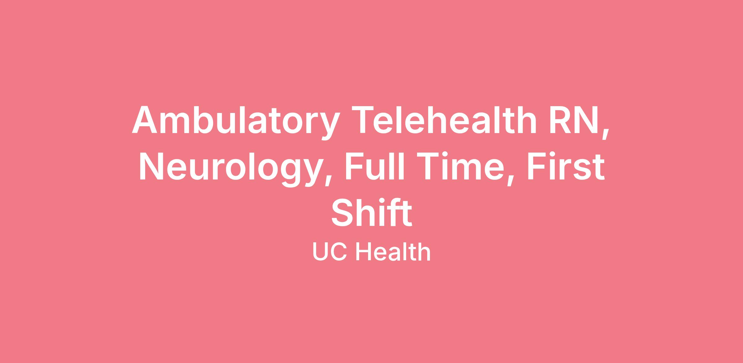 The Ambulatory Telehealth RN is responsible for providing comprehensive nursing care through remote telehealth services. This position involves patient assessment, triage, care coordination, patient education, population health management, and patient navigation in UC Health ambulatory clinics using telehealth technology. The Ambulatory Telehealth RN plays an integral role in the management of patients’ care and is expected to collaborate with UC Health providers and staff to ensure high quality patient centered care.