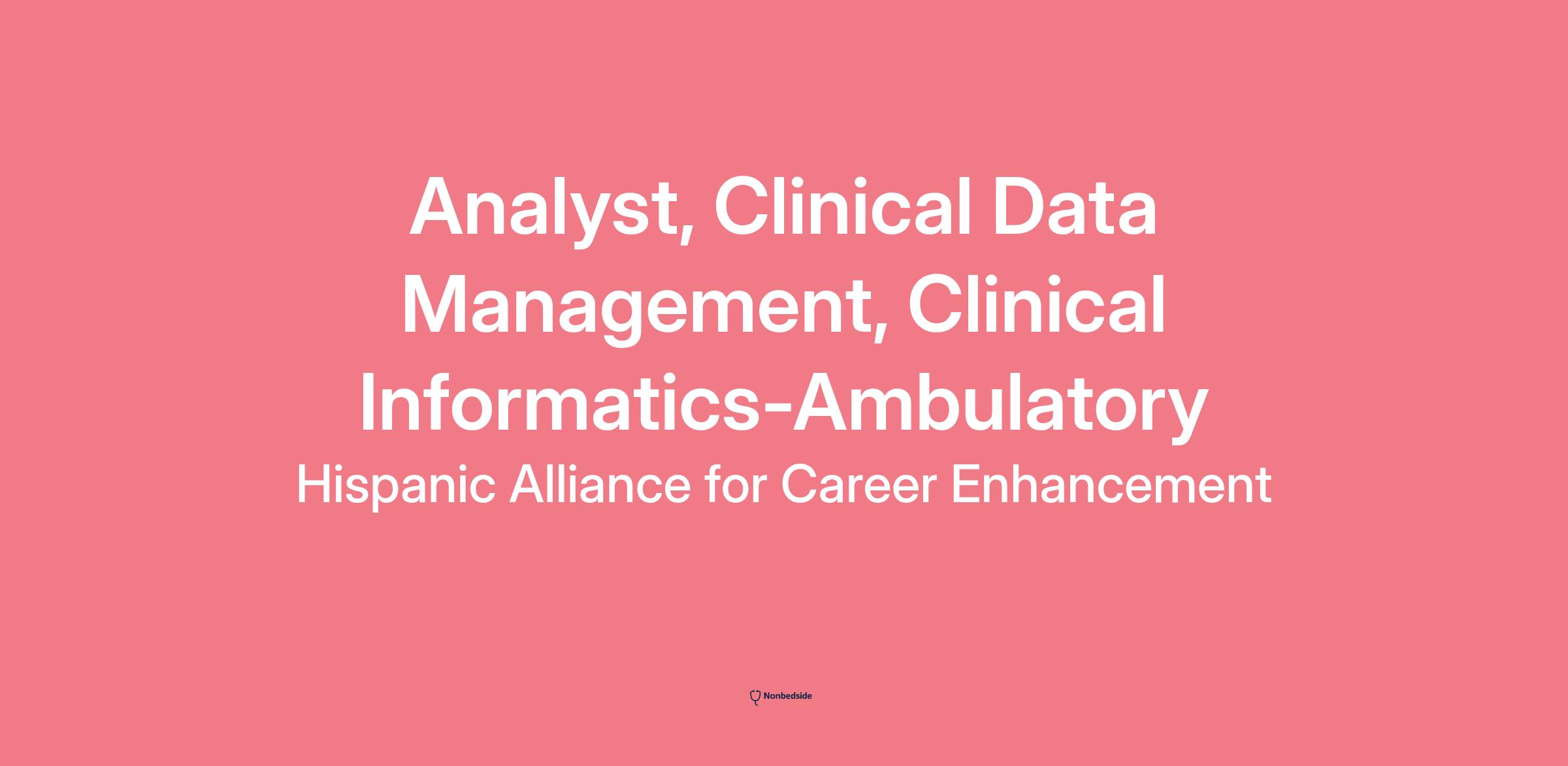 Analyst, Clinical Data Management, Clinical Informatics-Ambulatory