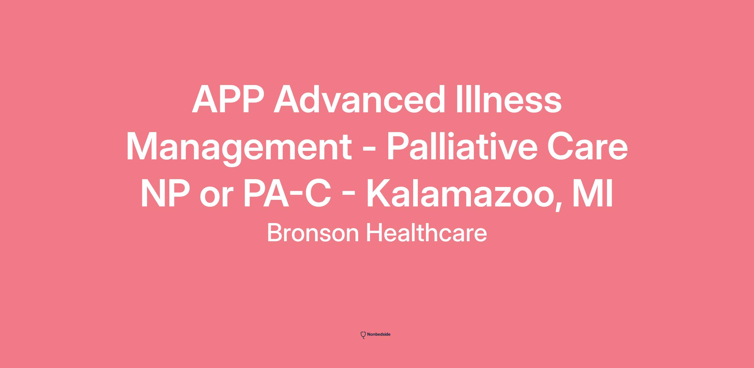 APP Advanced Illness Management - Palliative Care NP or PA-C - Kalamazoo, MI