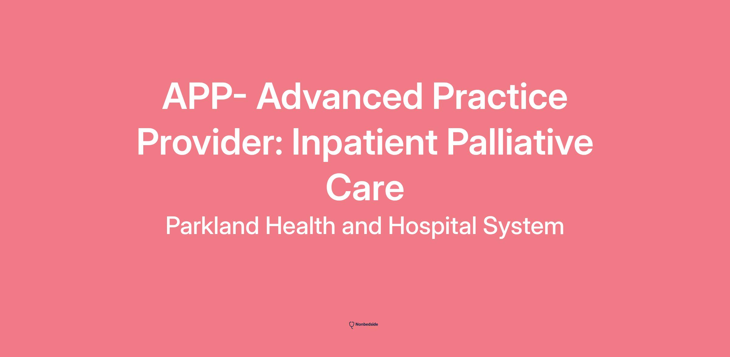 APP- Advanced Practice Provider: Inpatient Palliative Care
