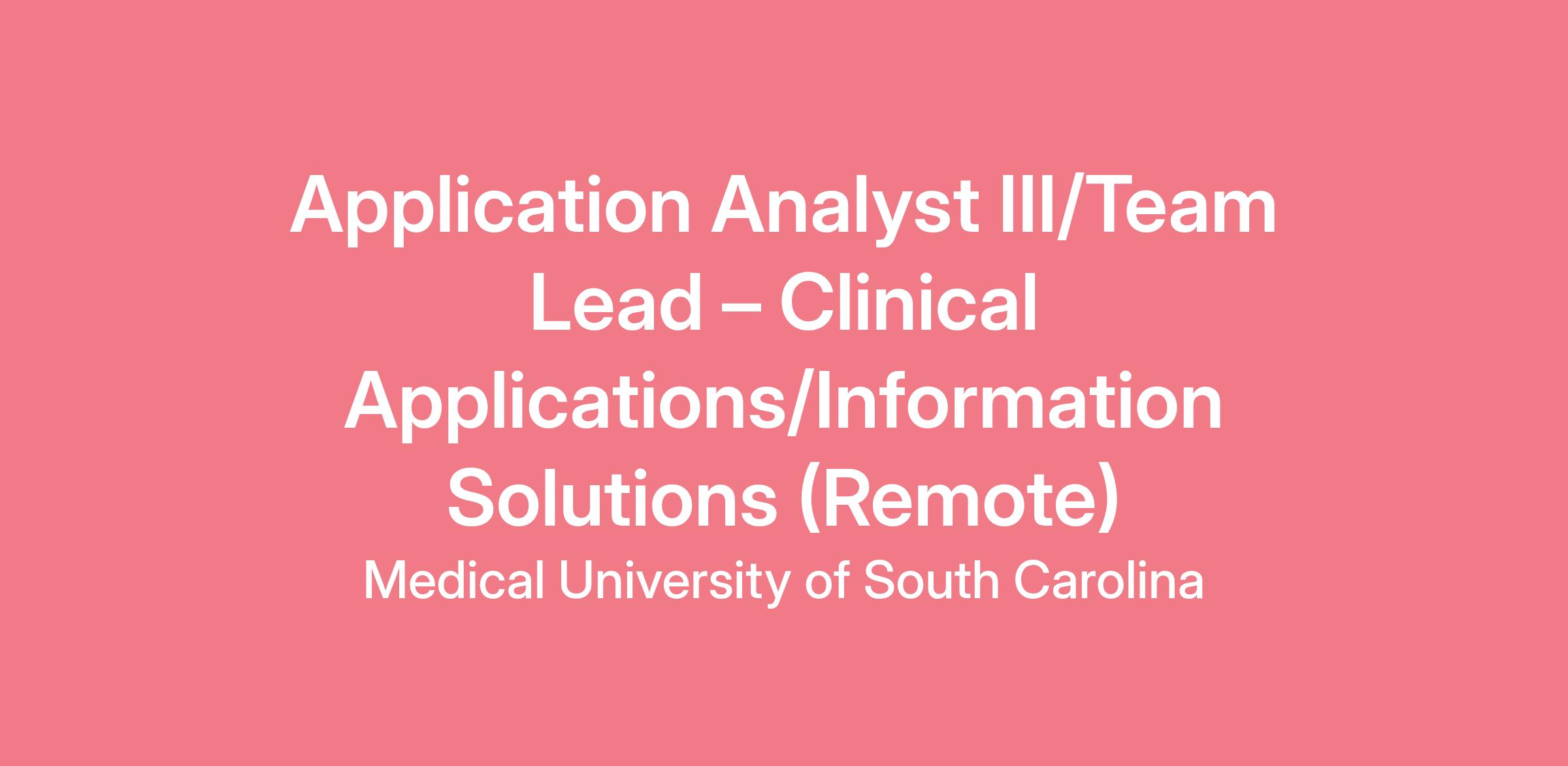 Application Analyst III/Team Lead – Clinical Applications/Information Solutions (Remote)