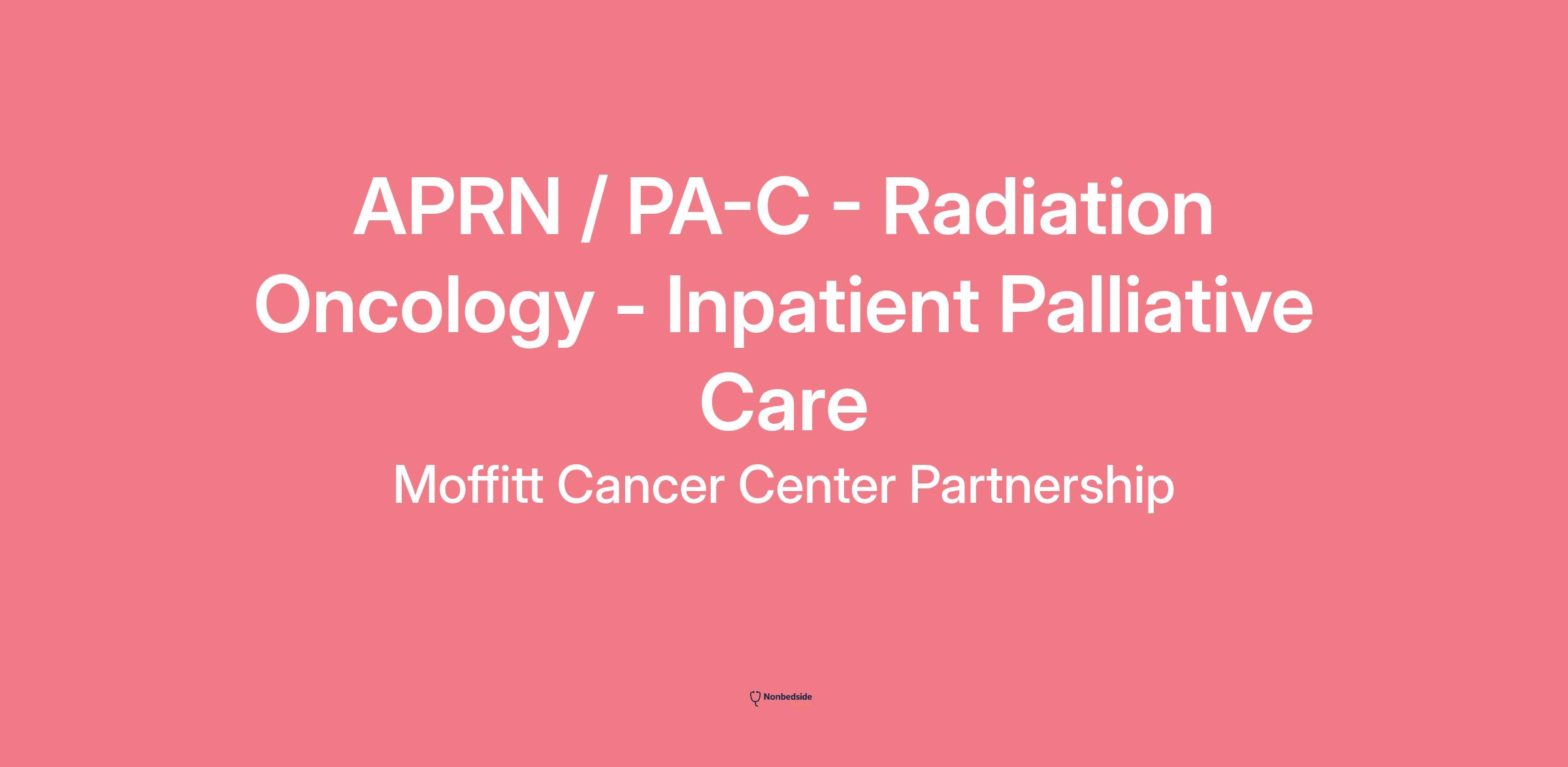 APRN / PA-C - Radiation Oncology - Inpatient Palliative Care Location Tampa, FL