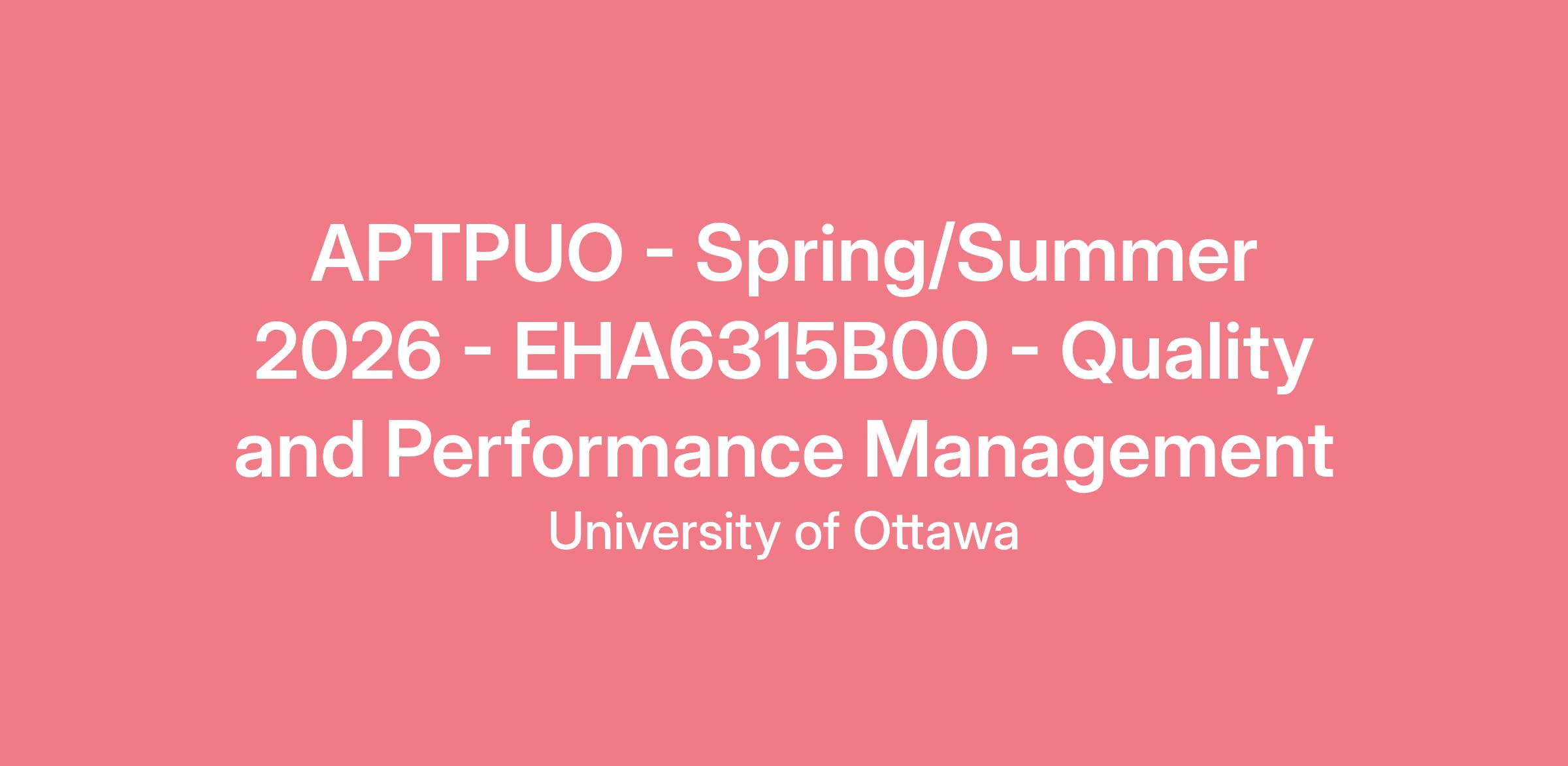 Quality and Performance Management in Health CareCourse Code: