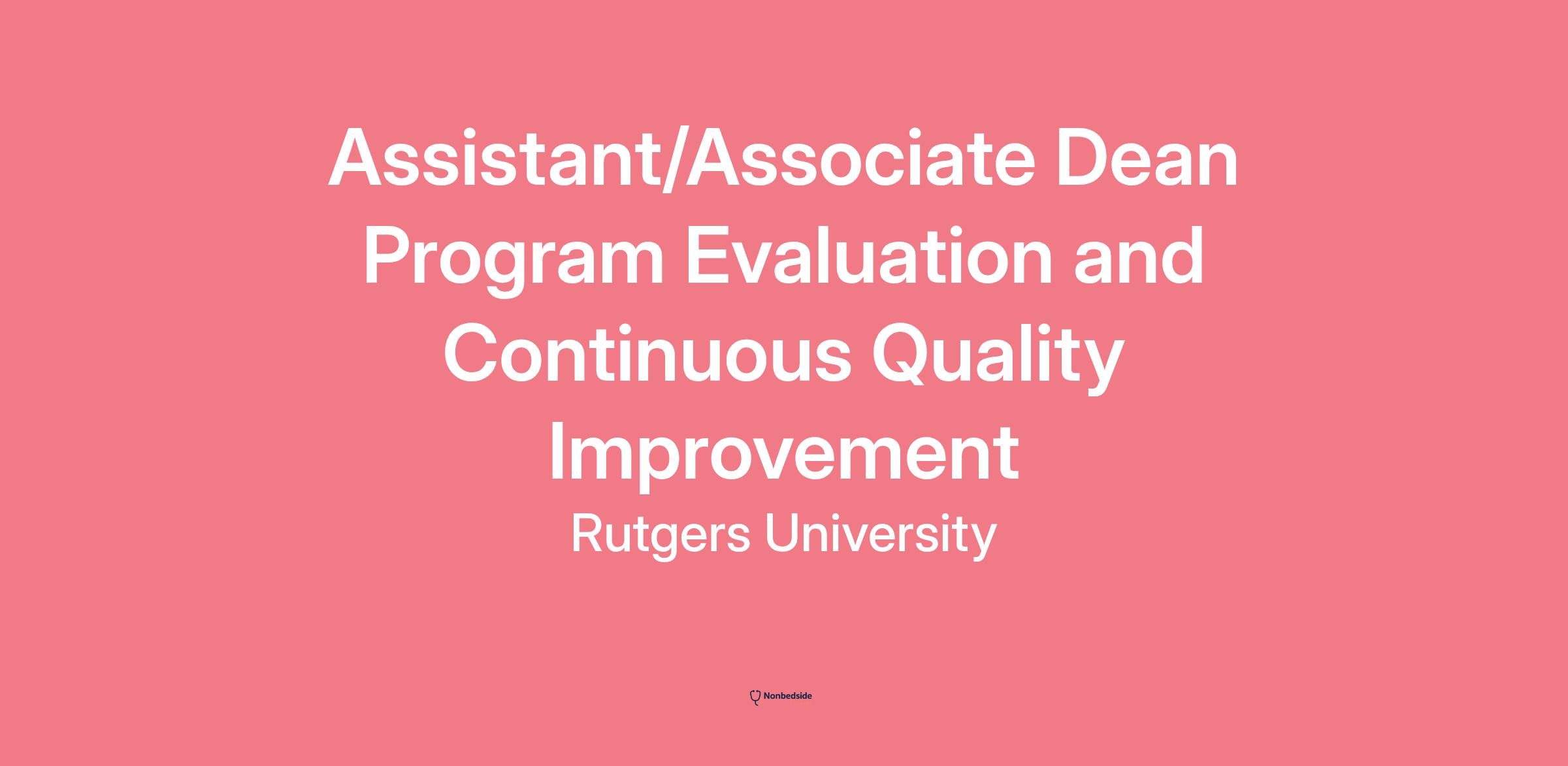 Join to apply for the Assistant/Associate Dean Program Evaluation and Continuous Quality Improvement role at Rutgers University
