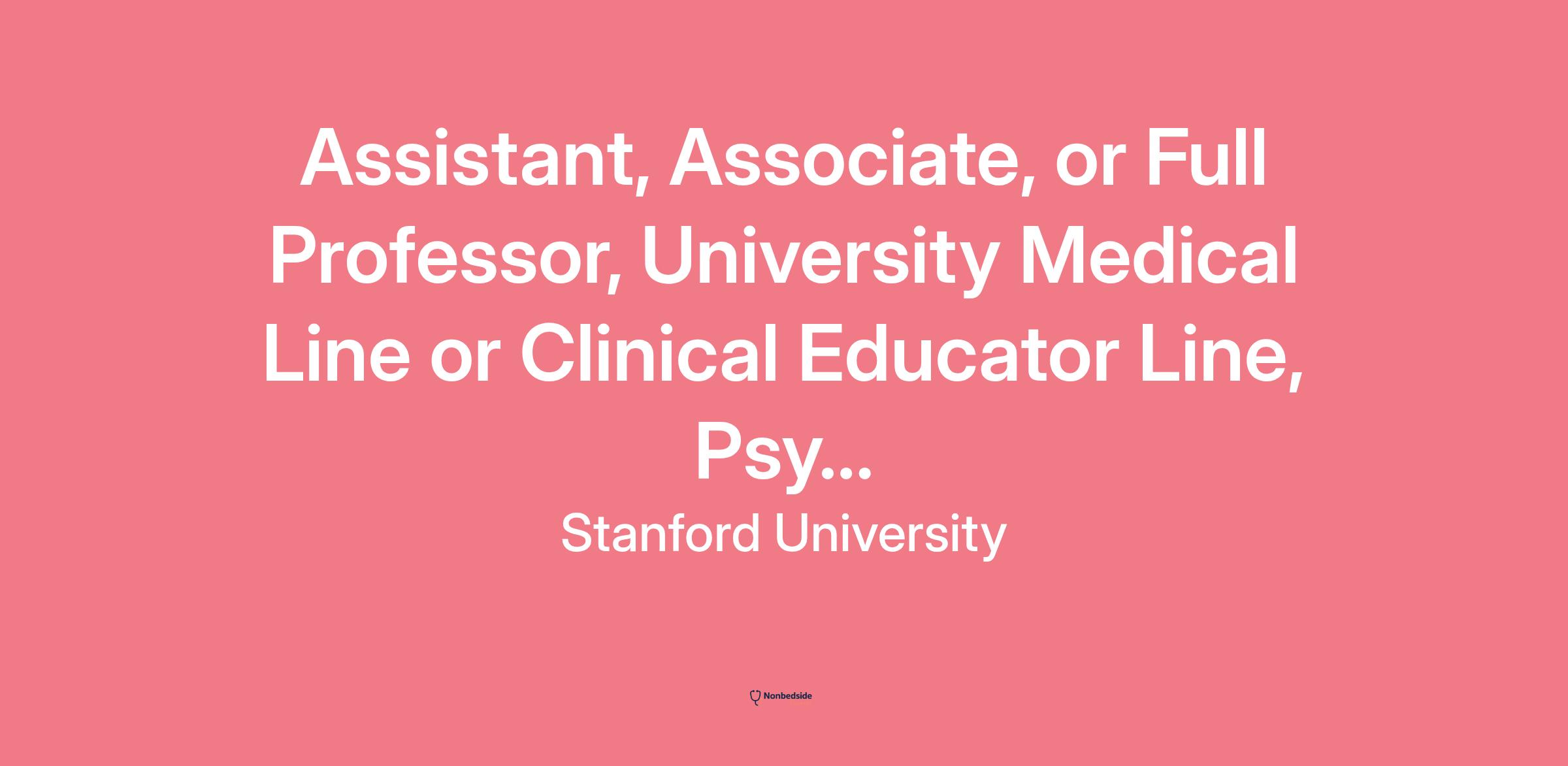 The Department of Psychiatry and Behavioral Sciences at Stanford University School of Medicine is seeking new full-time faculty members at the rank of Assistant, Associate, or full Professor in the University Medical Line or Clinician Educator Line. These are positions for clinician scientists specializing in mental health and based in the Department of Psychiatry and Behavioral Sciences, either located on the Stanford campus and related facilities or at the Veterans Affairs Palo Alto Health Care System.