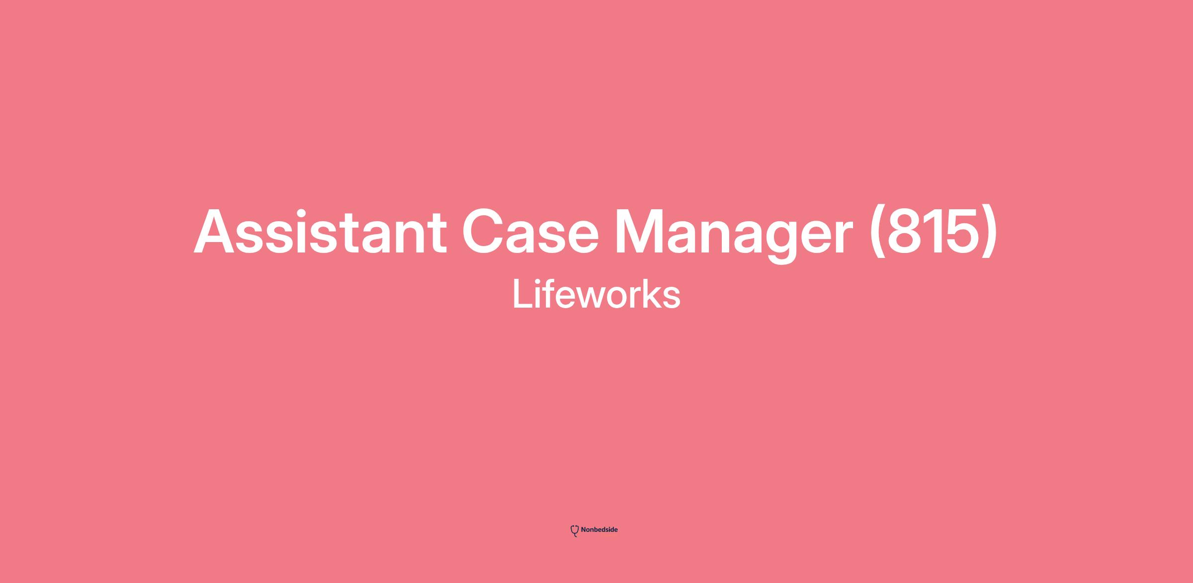 Join to apply for the Assistant Case Manager (815) role at Lifeworks
