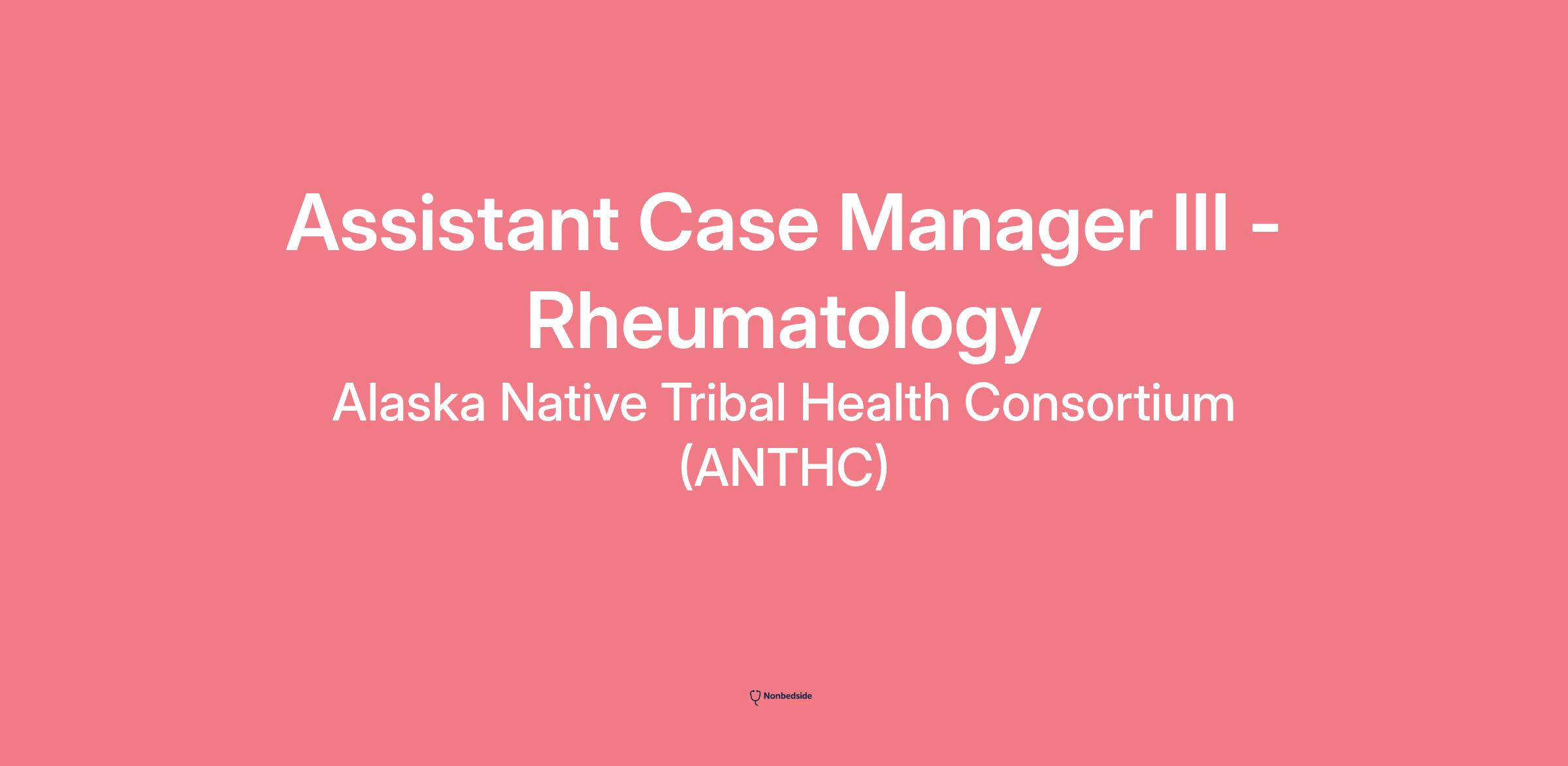 Join to apply for the Assistant Case Manager III - Rheumatology role at Alaska Native Tribal Health Consortium (ANTHC)