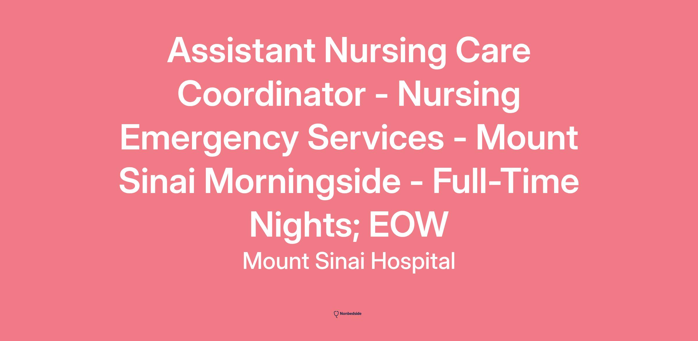 Assistant Nursing Care Coordinator - Nursing Emergency Services - Mount Sinai Morningside - Full-Time Nights; EOW