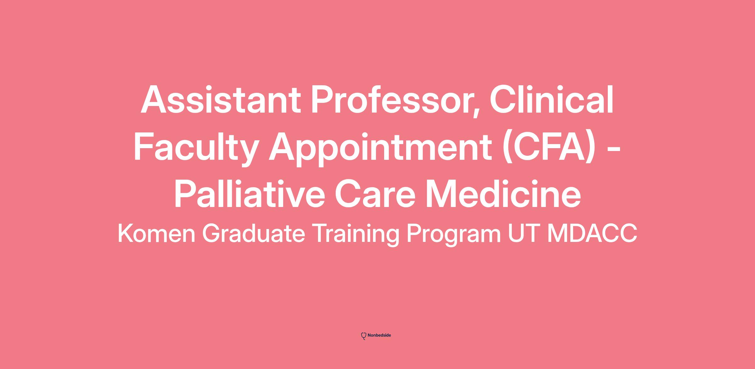 Assistant Professor, Clinical Faculty Appointment (CFA) - Palliative Care Medicine