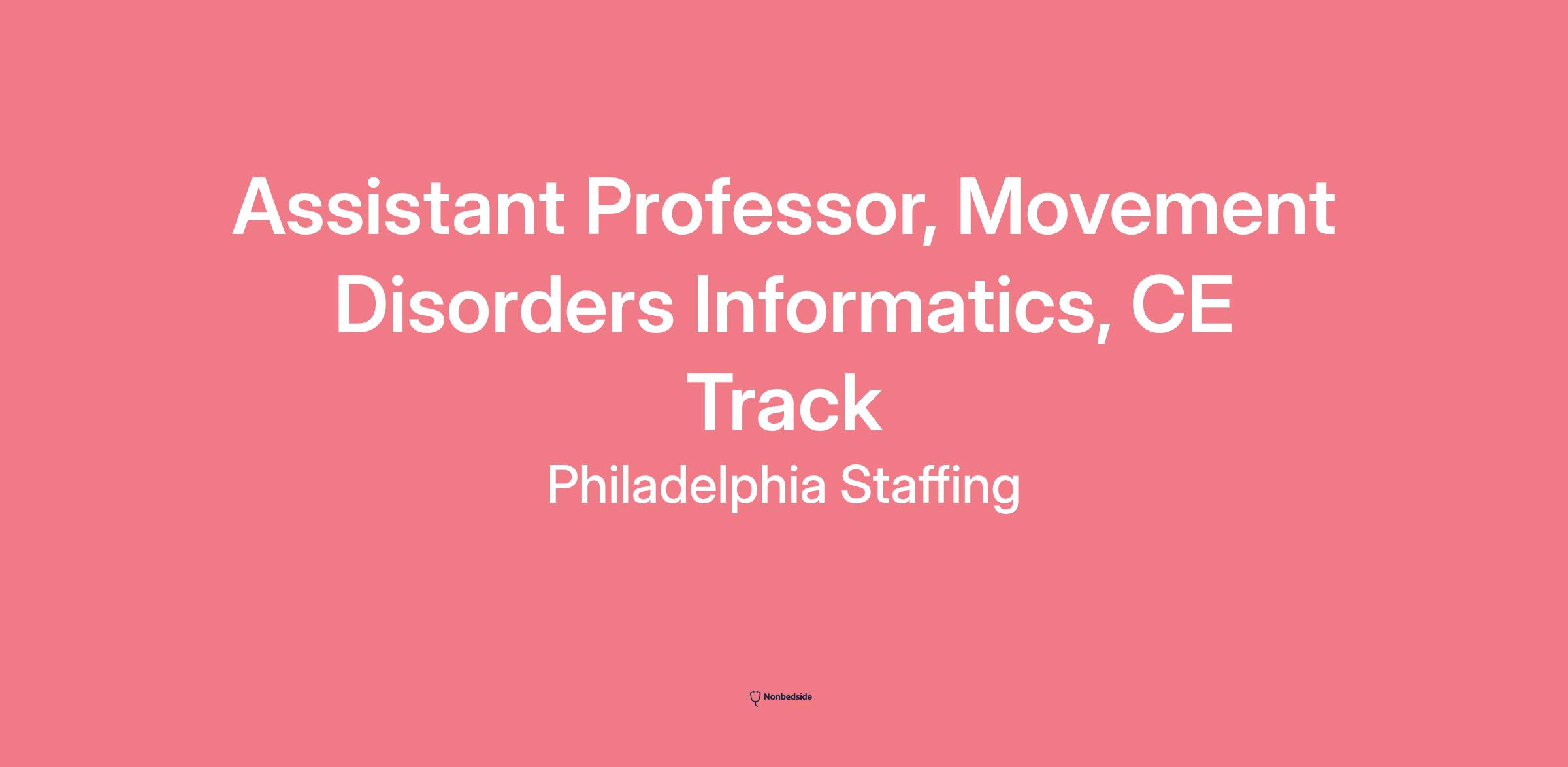 The Department of Neurology at the Perelman School of Medicine at the University of Pennsylvania seeks candidates for an Assistant Professor position in the non-tenure clinician educator track. Expertise is required in the specific area of evaluation and management of Parkinson's disease, related disorders, and other movement disorders. Expertise in botulinum toxin injection, management of neurostimulators, and novel technologies related to clinical assessment, such as the use of advanced computing techniques to analyze clinical data or the implementation of digital health technologies, is preferred. Applicants must have an M.D. or equivalent degree and be board-certified or board-eligible in Neurology. Completion of a fellowship in Movement Disorders is also required. Teaching responsibilities may include the teaching of medical students, residents, and fellows, as well as formal lecture opportunities within the department. Clinical responsibilities may include outpatient consultations and ongoing care of patients with Movement Disorders. Expertise with botulinum toxin injection and management of neurostimulators is strongly encouraged. Supervision of resident clinic and a minor component of inpatient care of general neurology patients (approximately 1-2 weeks per year) may be required. Clinical care will be primarily at Pennsylvania Hospital, but some coverage of satellite clinics in suburban locations may be available. Research or scholarship responsibilities may include either an independent research program (e.g., K-series award leading to further independent funding) or an active collaborative role in integrated research programs. Participation as a site investigator in clinical trials is also an option. Publication in peer-reviewed journals is expected. The University of Pennsylvania is an equal opportunity employer. Candidates are considered for employment without regard to race, color, sex, sexual orientation, religion, creed, national origin (including shared ancestry or ethnic characteristics), citizenship status, age, disability, veteran status or any class protected under applicable federal, state, or local law.