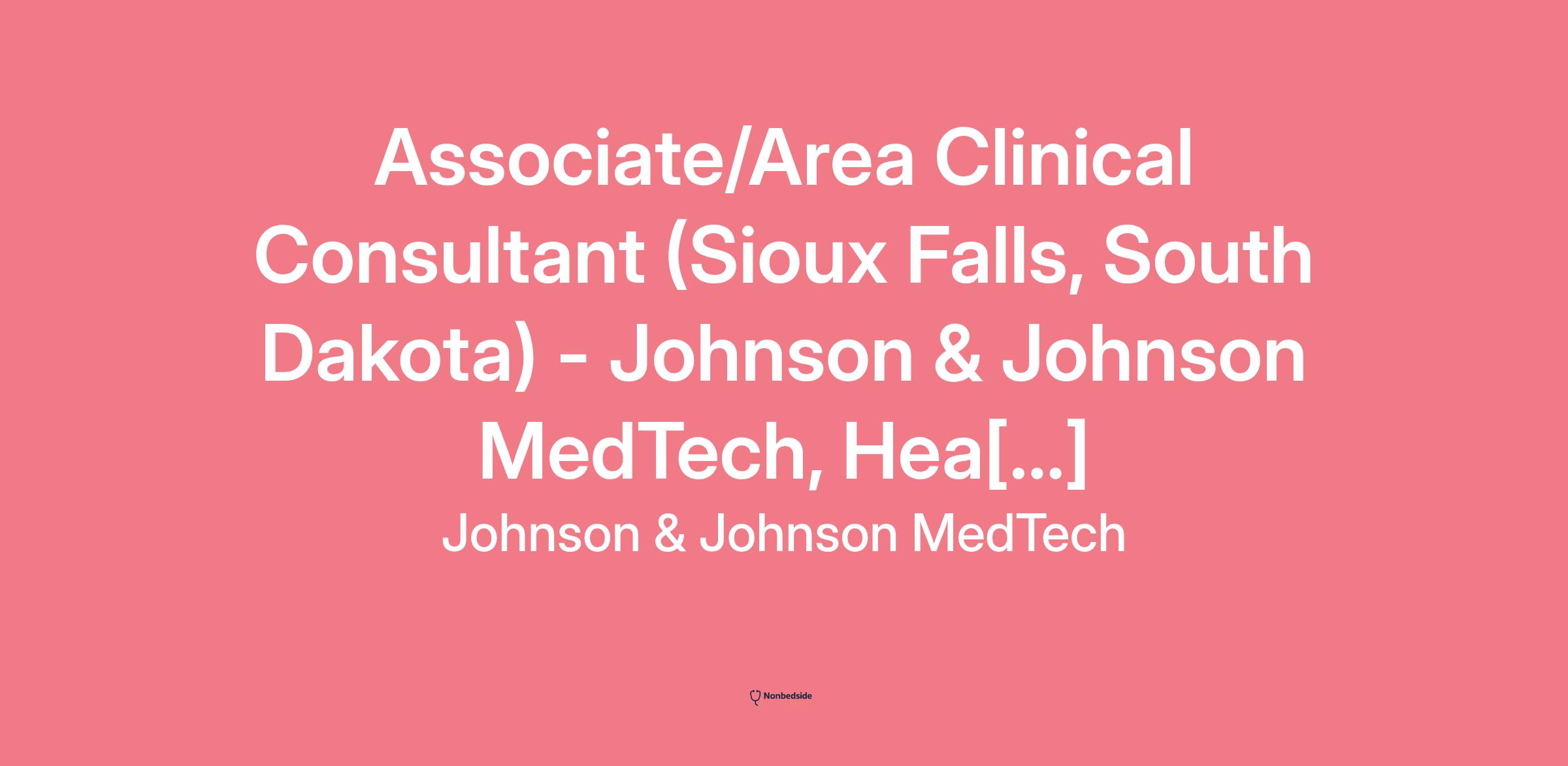 Associate/Area Clinical Consultant (Sioux Falls, South Dakota) at Johnson & J&hnmed Tech, Heart Recovery