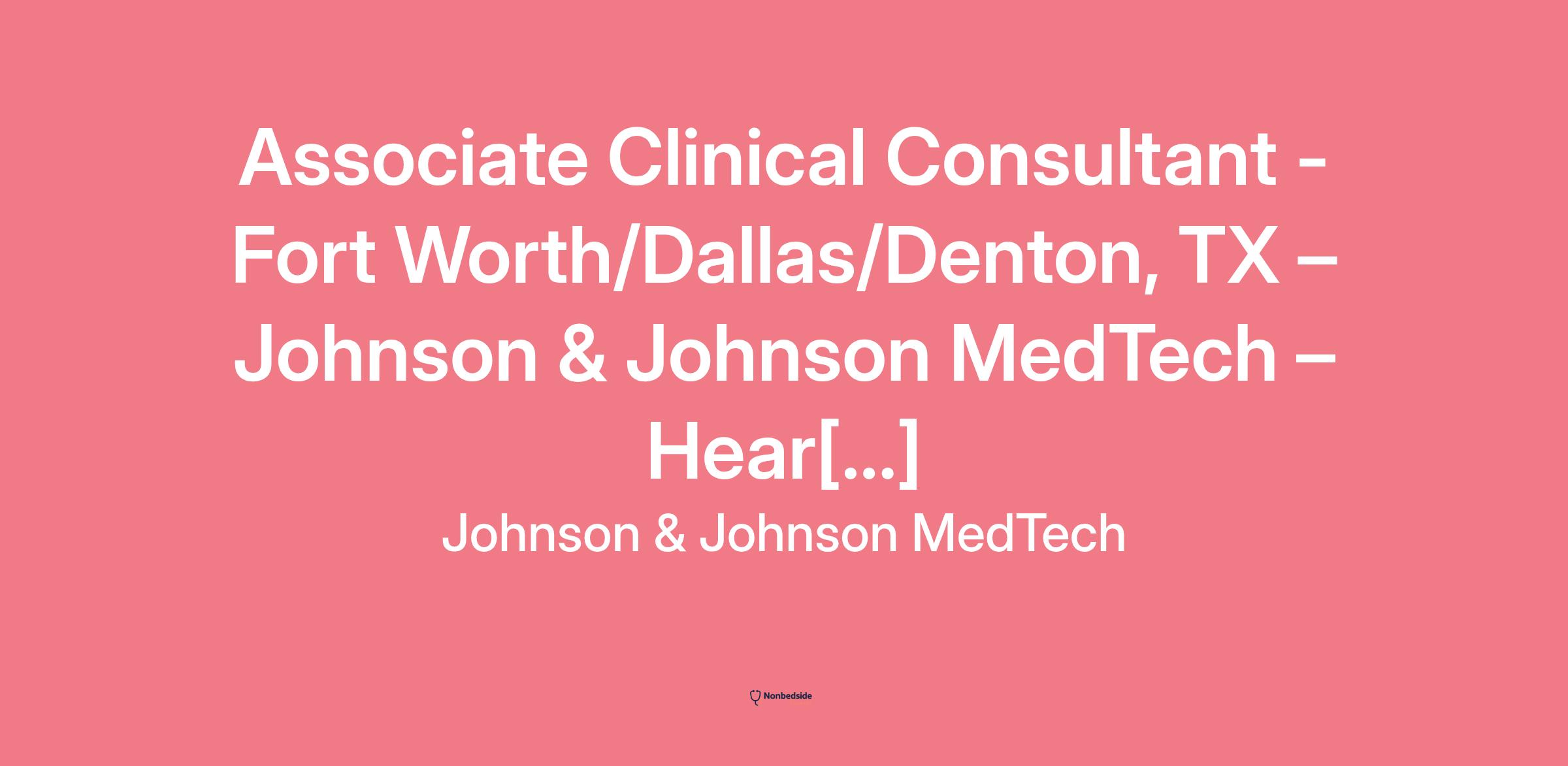 Johnson & Johnson MedTech invites qualified candidates to apply for the Associate Clinical Consultant role, located in Fort Worth, Dallas, and Denton, Texas. The position is field‑based, supporting cardiovascular expertise and the Impella® product portfolio.